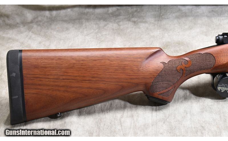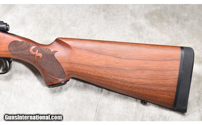 Description: Winchester light rifle with slim walnut stock, Schnabel tip, Mauser claw extractor, and controlled feed. The bolt is jeweled, and it has an internal box magazine with hinged floor plate. Chambered in the soft-kicking 7MM-08 Remington. 7mm-08 Remington SOLD Chambers: 4 Metal Condition: Excellent. Wood Condition: Excellent. Bore Condition: Shiny and bright with good rifling. Barrels: 22-inch Triggers: Factory trigger. Stock Dimensions: 13-1/2 inch LOP Fore End: Schnabel Butt Pad: Thick and soft rubber pad. Weight: 6 lb - 11 oz Sights: Drilled and tapped for your choice of scope. Item Location: Rogers |