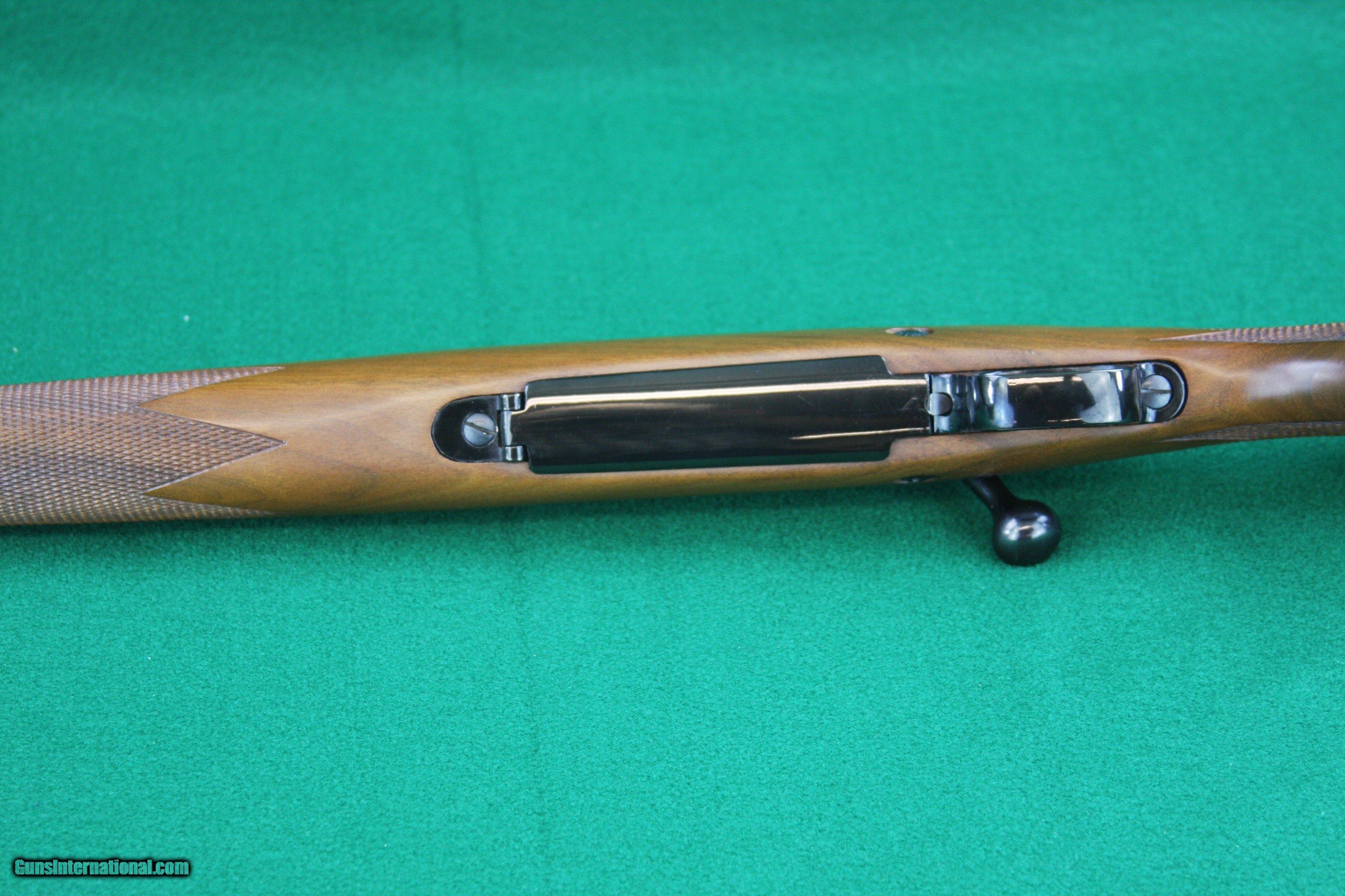 Description: This is a very rare Winchester Model 70 Mannlicher in Excellent condition, My research indicates approximately 2400 were produced between 1968 and 1971 and that about half of those went to overseas markets. This rifle was manufactured in 1969. The bolt is jeweled and has matching serial number. The stock is full length Monte Carlo Mannlicher walnut, checkered, with quick detachable sling swivel bases and Winchester butt pad. This rifle appears to have had very little use. See the pictures for condition. CHECK MY LISTINGS AND YOU'LL FIND 4 MORE MODEL 70 MANNLICHERS! See the pictures for condition. Happy to talk, text or email any time. Let me know if you have any questions. Thanks for looking! 6063297 BKBE 4E If your preference is Walnut & Blue, check out my other listings for quality Traditional and Custom Firearms. SOLD Rifle Caliber: .243 Winchester Manufacturer: WINCHESTER Model: 70 MANNLICHER - POST 64 Serial Number: G929628 Barrel Length: 19 Condition: EXCELLENT Bore Condition: EXCELLENT Action: BOLT ACTION Stock: MANNLICHER CHECKERED WALNUT Butt Pad: FACTORY WITH LOGO LOP: 13-1/2 Finish: SATIN WOOD - GLOSSY BLUR Weight: 7 LBS 10 OZ Sights: REAR MISSING, FRONT RAMP W/BEAD & HOOD Manufacture Date: 1969 |