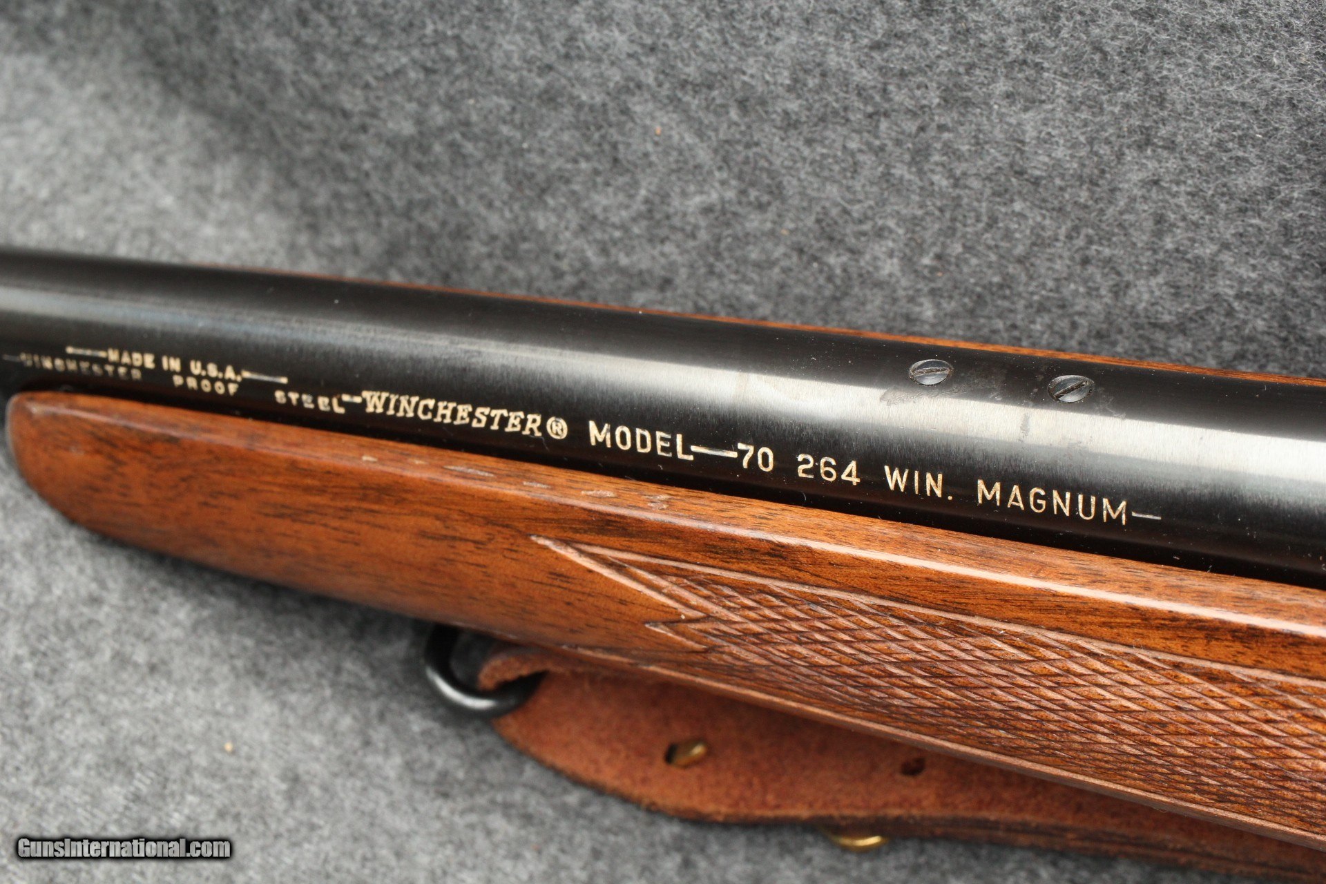Description: 264 Win Mag, serial number 8027XX. 1965 mfg date. 24" standard weight barrel, no iron sights. Overall in very good condition. Wood shows moderate wear/use, no cracks. Factory recoil pad. Metal is very good, minor wear. Bore is excellent, throat is excellent. Comes with older Weaver 4-12 AO scope. Clear lenses, no function guarantee on scope. More photos on request. Please add $60.00 for shipping and insurance. Will ship to C&R. SOLD Curio/Relic: Yes Rifle Caliber: .264 Winchester Magnum |
