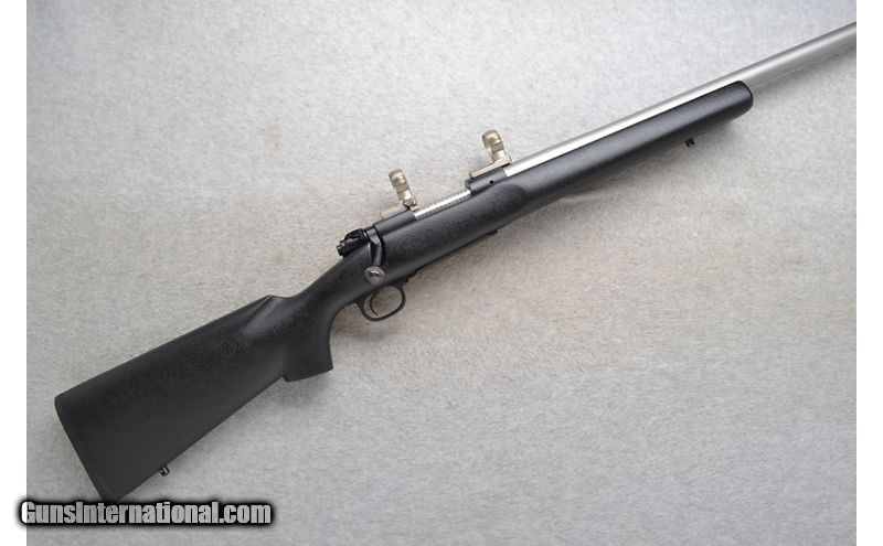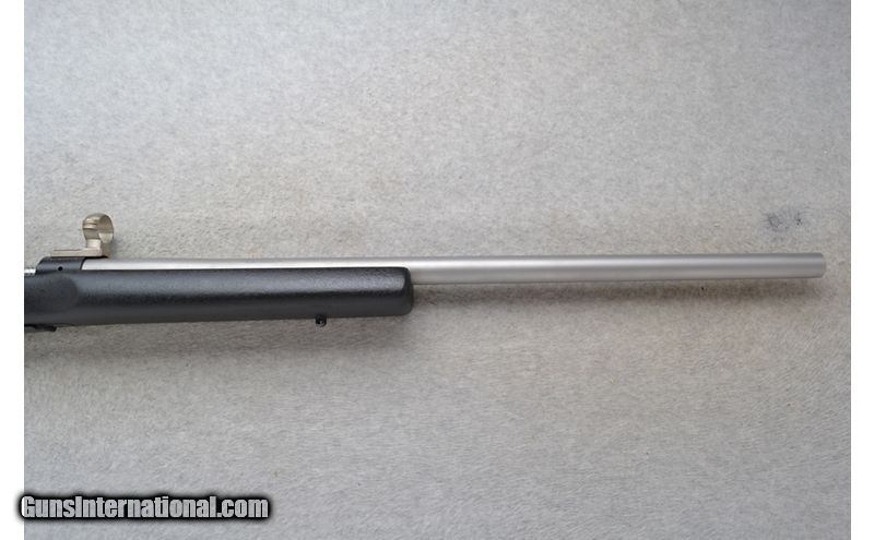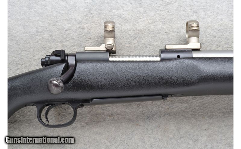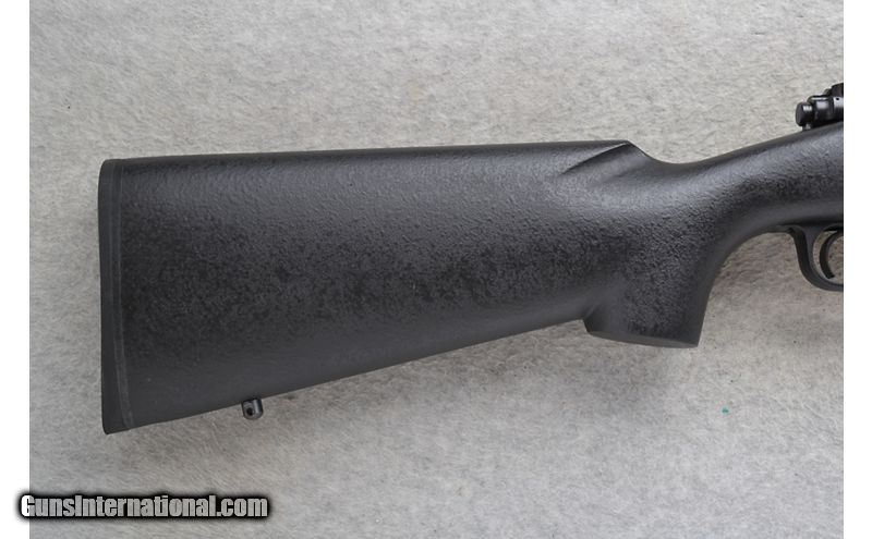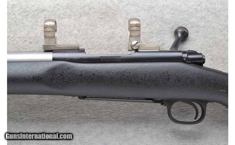 Description: This Winchester Model 70 SA is a right hand bolt action rifle in .22-250 Rem. Cal. It has a 26 inch Heavy Varmint barrel with a matte stainless steel finish. It has scope rings attached. No iron sights. The butt stock is a textured grip black polymer pistol grip. The forearm is a textured grip black polymer beavertail style. The bolt is jeweled and the bolt handle is checkered. .22-250 Remington SOLD Chambers: Right hand bolt action 4 round internal magazine with a hinged floorplate. Metal Condition: Excellent with a few minor handling marks. Bore Condition: Excellent. Barrels: 26 inch Heavy Varmint barrel with a matte stainless steel finish. Triggers: Grooved. Stock Dimensions: LOP 13 1/8 inches. Fore End: Textured grip black polymer beavertail style. Butt Pad: Winchester black rubber pad. Weight: 10 lb. 12 oz. Sights: Comes with scope rings attached. No iron sights. Item Location: Richfield, WI |