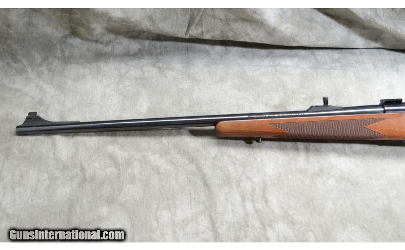 Description: SOLD Caliber Info: .223 Remington. Chambers: 4 round internal magazine with hinged floor plate. Metal Condition: Very good with some light scratches and very shallow pits/rust. Wood Condition: Very good. A few shallow handling marks and scratches. Bore Condition: Shiny and bright. Rifling good. Barrels: 24 inch - blue, with open sights. Triggers: Factory trigger. Stock: Checkered Monte Carlo pattern with grip cap. Stock Dimensions: 13 - 3/8 Inch LOP. Butt Pad: Red rubber pad. Weight: 7 lb. - 12 oz. Sights: Gold bead and folding leaf open sights. Drilled and tapped for scope. Item Location: Rogers,, MN |