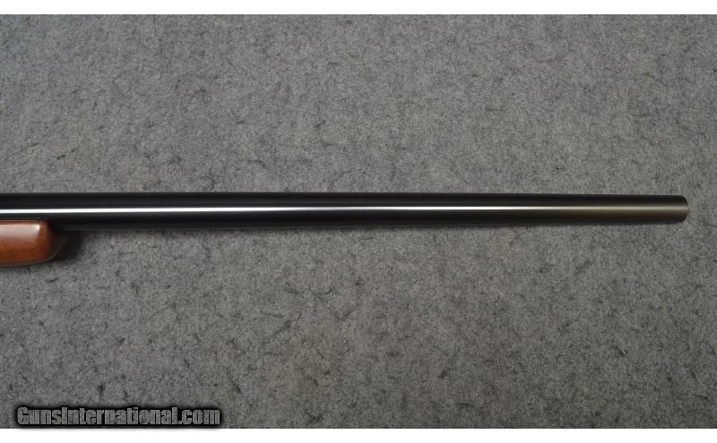 Description: This 1991 right hand bolt action rifle is a Winchester 70 Sporter Varmint chambered in .223 Remington. It has a walnut stock with diamond checkered fore arm and grip, a Monte Carlo raised cheek piece, swivel studs top and bottom, black grip cap piece, and a Winchester red rubber butt pad. The high gloss bluing is in very good condition overall showing only minimal thinning at the muzzle. Walnut stock is in very good condition overall, with only minimally noticeable handling marks. It comes with scope bases. .223 Remington SOLD Metal Condition: "Bluing is in very good condition overall, showing only minimal thinning at muzzle Wood Condition: "Walnut stock is in very good condition overall, with only minimally noticeable handling marks Bore Condition: Bore is bright and shiny with strong rifling intact Barrels: 26 inch barrel Stock Dimensions: "13½"" LOP, 46"" overall length Fore End: Walnut diamond checkered fore end Butt Pad: Winchester red rubber butt pad Weight: 9 lb 6 oz Sights: Comes with scope bases only Item Location: Chesterfield, MI |