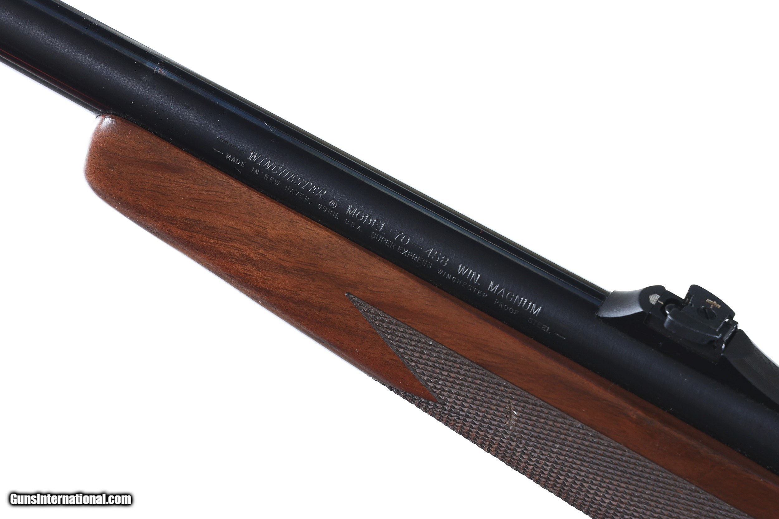 Description: Excellent overall condition, marring and pressure indentations present in wood. Free Shipping, No Credit Card Fees! SOLD Manufacturer: Winchester Model: 70 Serial Number: G1744166 Caliber Info: .458 win mag Barrels: 22 |