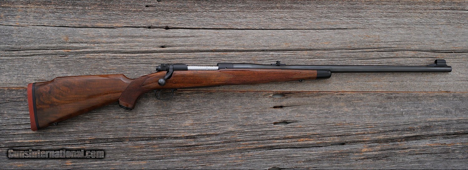 Description: Winchester - 70 Super Grade - .375 H&H Mag caliber - Item Number: WIN444334 Rifle type: Bolt Action Action: Bolt Action Barrel length: 25 Sights: Factory Sights Weight: 9 lbs, 4 oz Overall condition: Very Good Stock condition: Very Good Metal condition: Very Good Stock: Original finish Metal: Original finish Type of Case: none Finish: Blue Type of Butt: Factory Pad thickness: 0.75 " Manufactured in: USA Lop: 13 5/8 " Hand: Right Comments : Rifle is in very good condition with some light handling marks. R-72 SOLD |