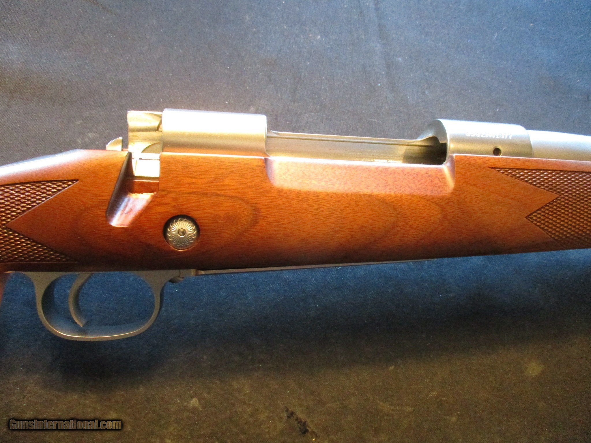 Description: Winchester Model 70 Super grade Stainless, new in box. Email me if you would like these pics sent to you, they will come through bigger and better than on the listing page here. We do offer Lay-A-Way. Our standard terms are 25% down, 90 days. Initial deposit is not refundable. Email me with any questions. I am a store front dealer, and I will close s if the gun sells locally. Once it has aI will pull it from my shelves. Please check your local laws to confirm it is legal to own in your state! Buyer pays $25 shipping and insurance to your FFL in the lower 48. AK, HI or PR is extra. I will ship to California, NO PROBLEM! All my guns come with a non-firing, 3 day unconditional return privilege, from the day UPS delivers to your dealer. Buyer pays shipping both ways if the gun comes back. I can add a new hard case by PLANO for secure shipping for $25 if the buyer wishes (highly recommended, cheap insurance, really helps keep the UPS monster from eating my guns!). No sales tax on guns ship out of Kansas, guns sold in Kansas are subject to Kansas sales tax. I am a licensed FFL, and will include a copy of my FFL with the gun for your dealer’s records. I will ship to a C&R if the gun is eligible. I will ship to California, but you need to confirm the gun is legal where you are, California or other. WE BUY AND CONSIGN GUNS AND GUN COLLECTIONS! We will travel to pick up collections! . WE ALSO TRADE FOR CLASSIC CARS AND TRUCKS! Email me with any questions, and good luck! SOLD |