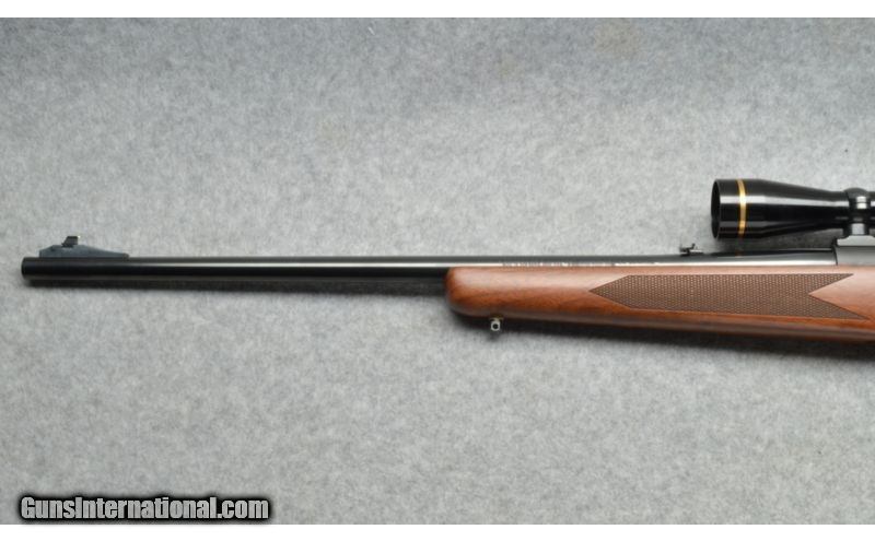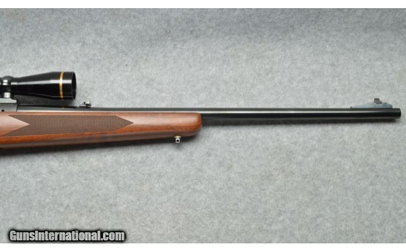 Description: SOLD Manufacturer: Modern manufacture. Caliber Info: .30-06 Sprg. Chambers: Bolt action, three round internal magazine. Metal Condition: Very good. Wood Condition: Very good. Bore Condition: Excellent. Barrels: 24 inch round blue rifled barrel. Triggers: Single stage trigger. Stock: Checkered pistol grip walnut stock with a satin finish. Stock Dimensions: 13 1/2 inch length of pull. Fore End: Checkered walnut fore-end is an integral part of the stock. Butt Pad: Black rubber recoil pad. Weight: 8 1/4 pounds. Sights: White dot on a blade at the muzzle, with semi-buckhorn rear sight and a Leupold Vari-X III 2.5-8x40mm scope. Item Location: Berlin, MA |