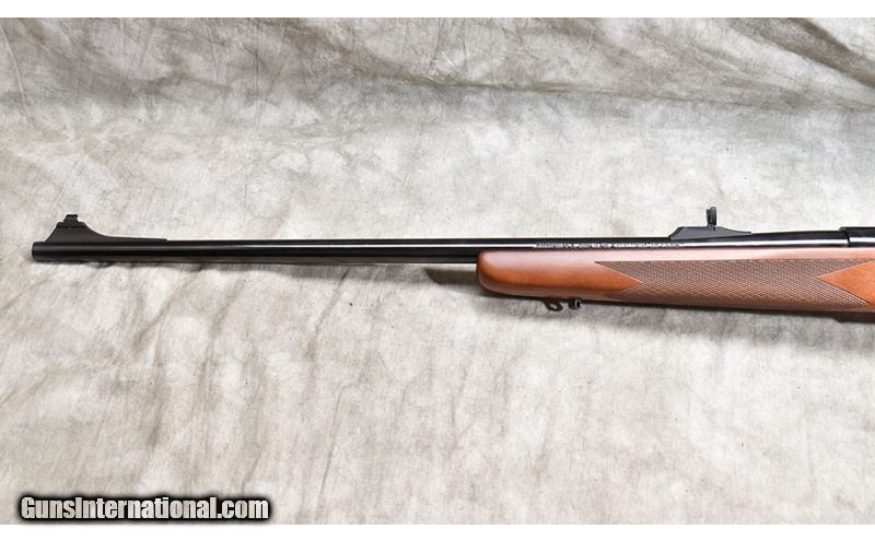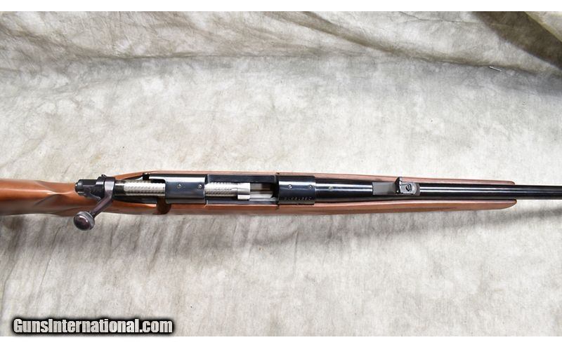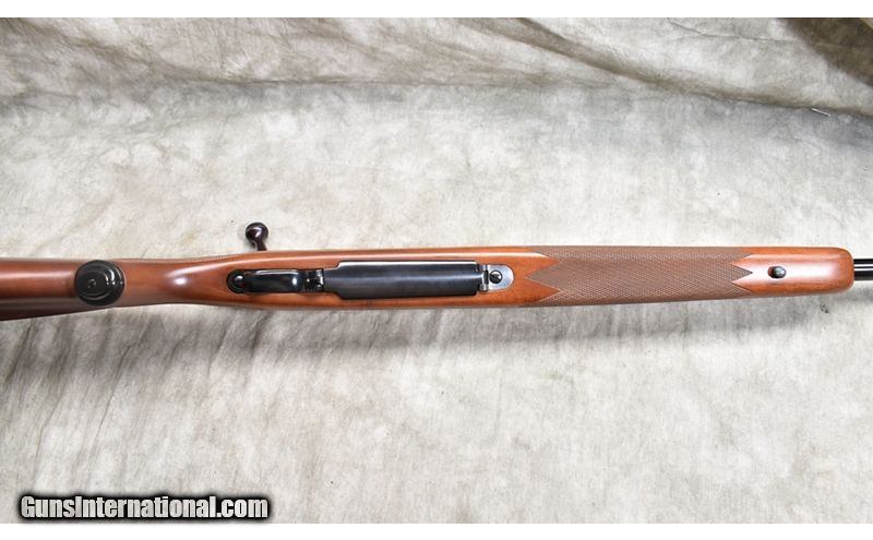 Description: This push feed version of the Model 70 XTR features a nice walnut Monte Carlo stock, sharp checkering, and internal magazine with hinged floor plate. It has a jeweled bolt, open (iron) sights with provision for scope, and is chambered in .338 Win Mag for elk and bear. .338 Winchester Magnum SOLD Chambers: 4 Metal Condition: Excellent. Wood Condition: Excellent. Bore Condition: Shiny and bright with good rifling. Barrels: 24-inch Triggers: Factory trigger. Stock Dimensions: 13-3/8 inch LOP. Butt Pad: Rubber pad. Weight: 7 lb - 11 oz Sights: Gold bead and folding leaf open sights. Drilled and tapped for scope. Item Location: Rogers |