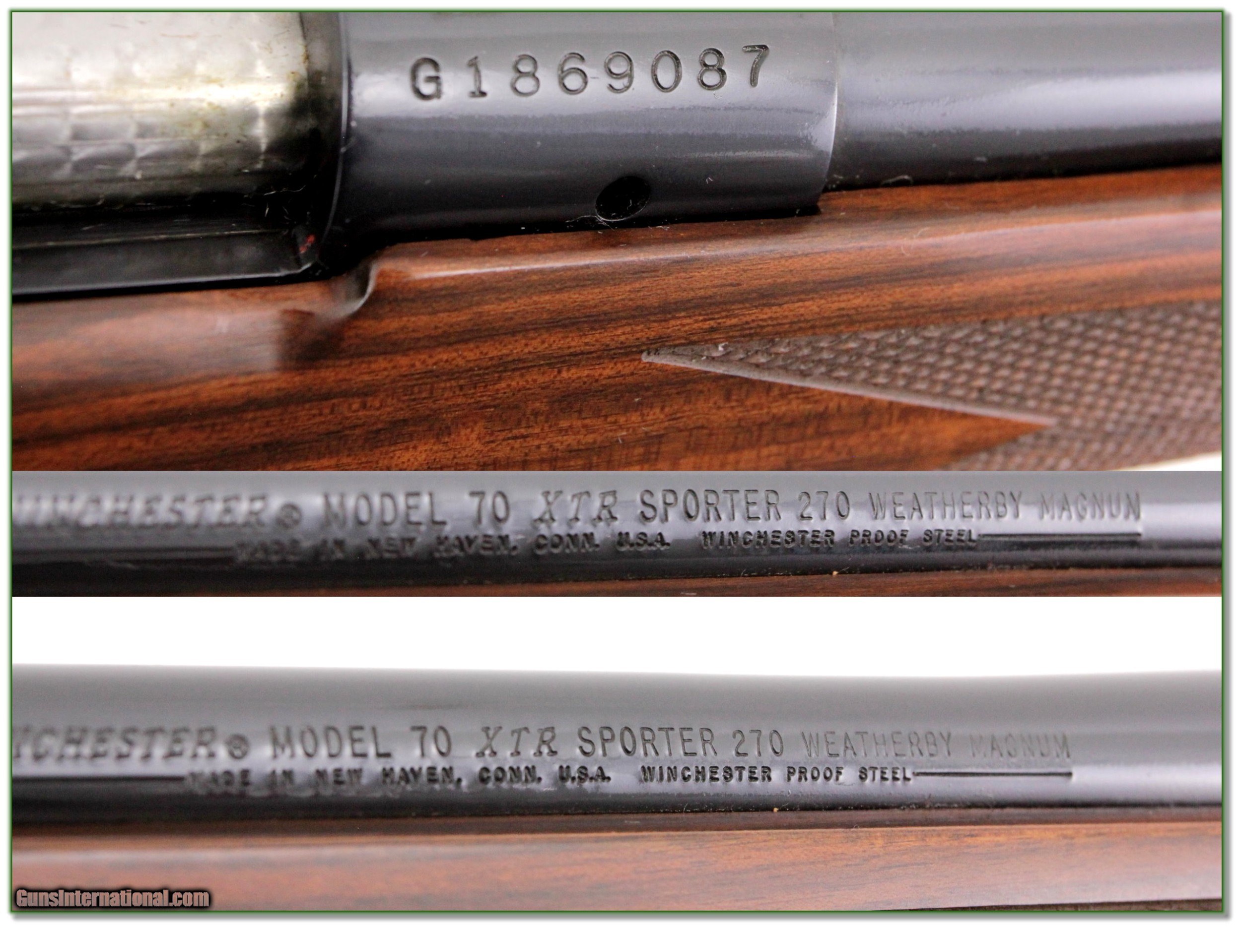 Description: Collectors, shooters and long rang hunters, this is a very hard to find Winchester Model 70 XTR in the rare 270 Weatherby Magnum. It looks about new with no marks I see. It has beautiful grain and the barrel is 24in. It will make a classic long-range big game gun or be a prized addition to your collection! Shipping with insurance is $39. Please email me with any questions or larger pictures. (Consign your quality firearms with Shooting Investments for only 12%! Let me know if you have any you would like to sell!) 19-1128 Payment: Payment is by Money Order, Cashiers Check or Personal Check. I can now also accept MasterCard and Visa with a 3% convenience fee. PayPal can be used for some items but never firearms. Please let us know if you would like to pay via PayPal. Shipping: The shipping charge will be listed in each description. It is $39 for most long guns and $29 for most handguns. Some heavy guns or those insured for over $2000 will be higher. Shipments to Alaska and Hawaii are higher because air shipment is required. Most firearms are shipped on Tuesday and Thursday and usually in 5 days of receipt of payment. We package all shipments carefully and insure them. For long guns you can purchase a new Plano case for $19. They now cost us $22 when buying 100 at a time. Optics are shipped Priority Mail and most other non-firearm shipments are shipped First Class. Returns: Our return policy is simple. If for any reason you are not pleased with your purchase, you may return your item for a full refund of purchase price. Ammunition cannot be returned. It is important to us that you are happy. Guns cannot be fired or dissembled before returning them and they must be returned in the same condition as received. Notification of a return must occur with-in 3 days of receipt at your dealer. Shipping, convenience and dealer fees are not refundable and are the responsibility of the buyer. Lay-a-way: If needed, we offer a 60 day lay-a-way option on most firearms. It is 1/3 now, 1/3 in 30 days and 1/3 in 60 days. Lay-a-way firearm sales are final and if not completed the first payment cannot be returned. Consigning your firearms with Shooting Investments: We will help you get top dollar for your firearms. While most local guns shops charge 20% or more, our fee is only 12% with a minimum of $75. At your local gun shop it might take months to sell. Selling on-line provides instant access to thousands of interested buyers. You won’t find any other on-line dealer willing to sell your firearms for only 12% or listing every gun on 3 separate s. Selling through an House typically costs the seller 15% and the buyer an addition 15% (so 30%) and you have to wait several months to sell and longer to receive funds. If properly priced, we will sell your firearms in a few weeks. Send us an email or give us a call and we’ll explain how easy it is for you to get top dollar. Trading: Trading for use is really just buying your gun to re-sell. If you have a gun you want to trade, please email a picture and we will let you know what we can give or it. You will always get more if we sell it for you on consignment. Help for California Buyers: We are happy to ship to California. It is the buyer’s responsibility to make sure any item you buy is legal in your state. We are also happy to help with your purchase of a firearm from someone other than us. If you see a gun you would like to buy but the seller can’t or won’t ship to California they can ship to use and we’ll then ship it to your California dealer. The cost for this service is only $30 + shipping. Let us know if we can help! SOLD |
