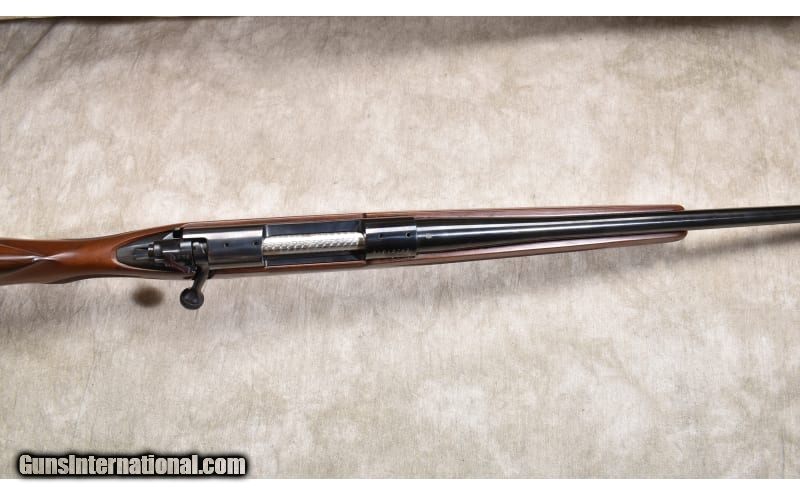 Description: Dating to 1989, this Winchester features a walnut Monte Carlo stock, adjustable trigger, jeweled bolt, and internal magazine with hinged floorplate. It has been fired a bit, but it doesn't show. .300 Weatherby Magnum SOLD Chambers: 3 rounds Metal Condition: Excellent. Wood Condition: Excellent. Bore Condition: Shiny and bright with good rifling. Barrels: 24 inch barrel Triggers: "Factory trigger, adjustable. Stock Dimensions: 13-3/8 inch Fore End: Checkered Butt Pad: Rubber pad. Weight: 7 lb - 9 oz Sights: Drilled and tapped for your choice of scope Item Location: Rogers |
