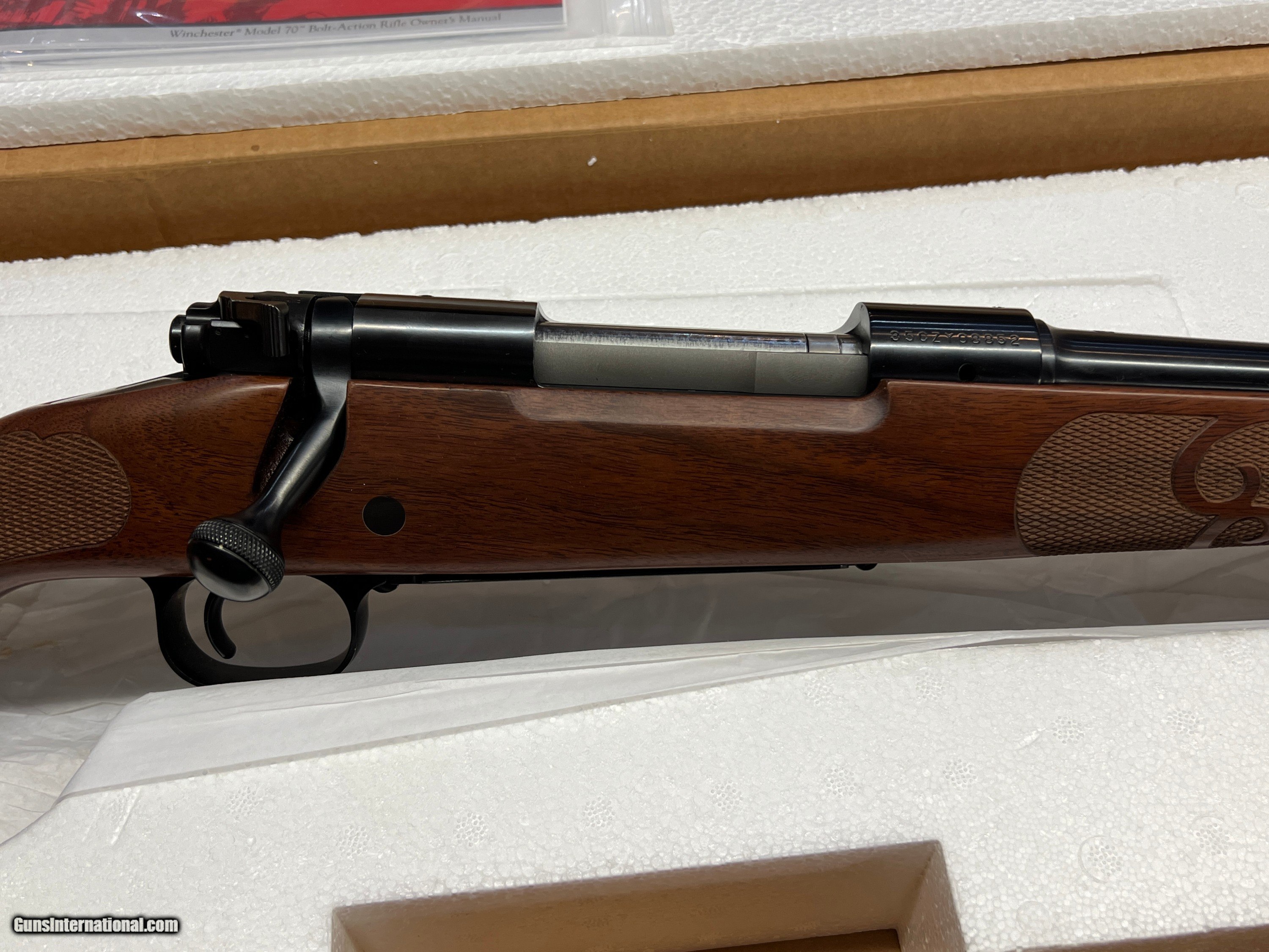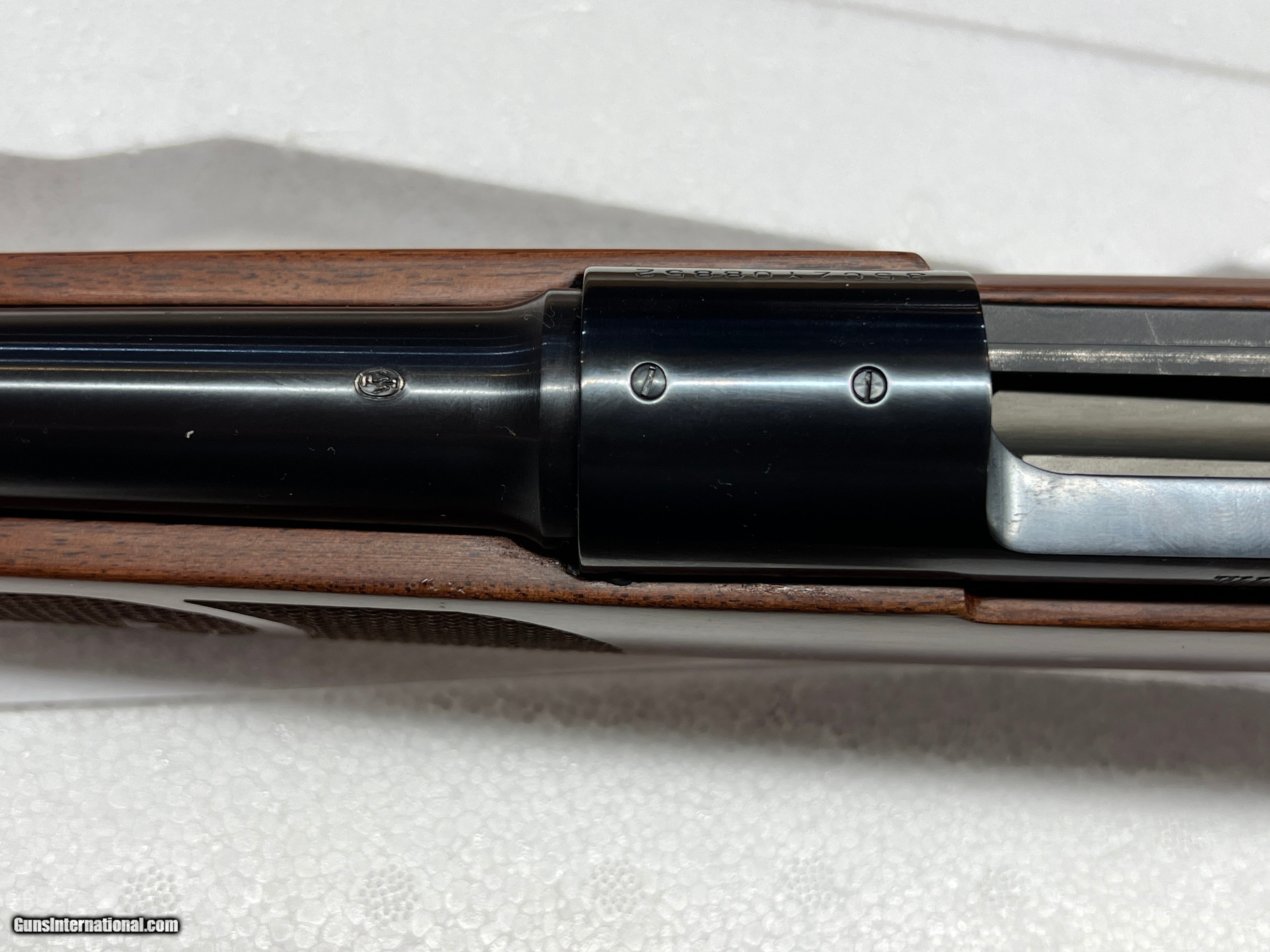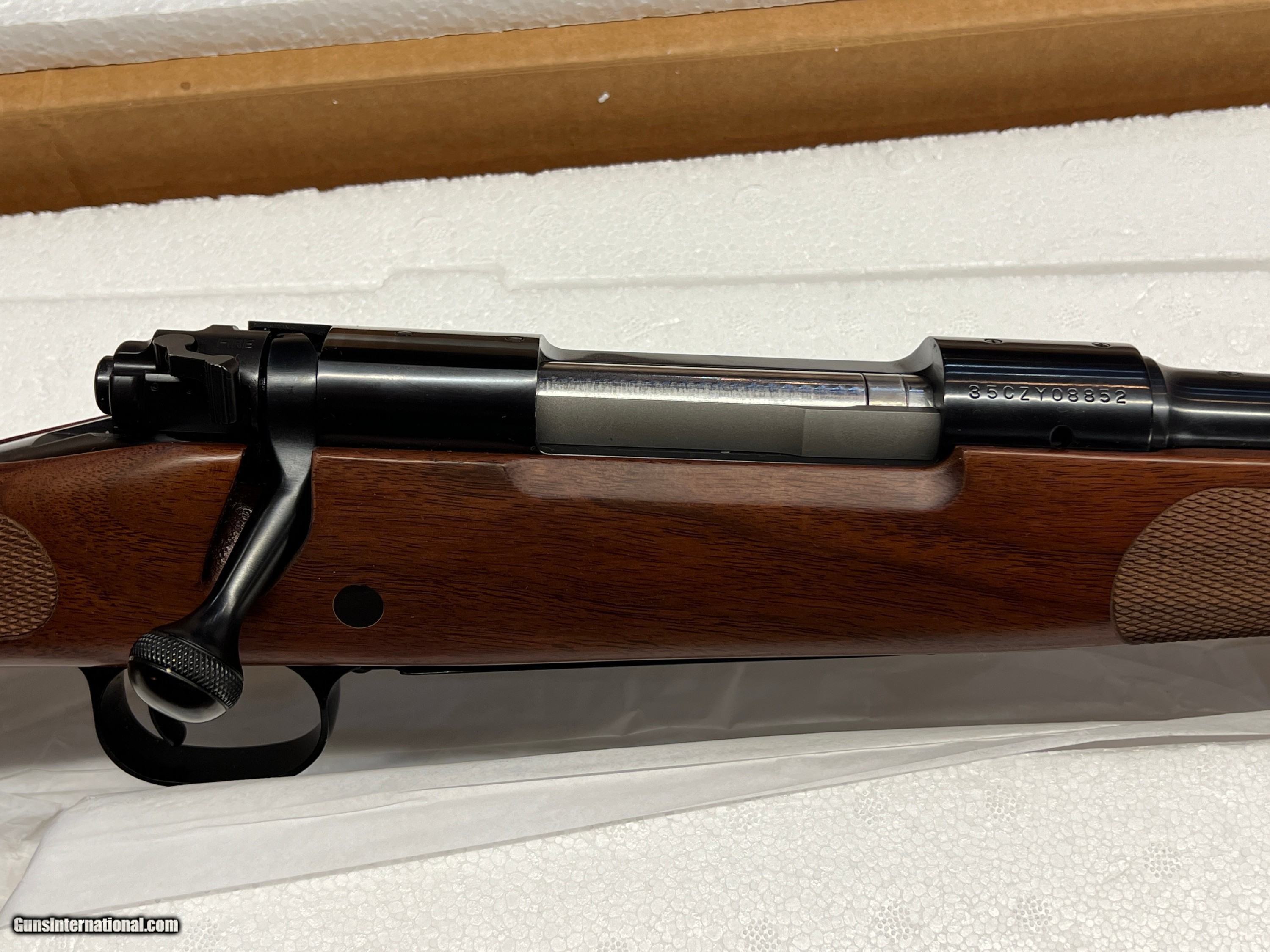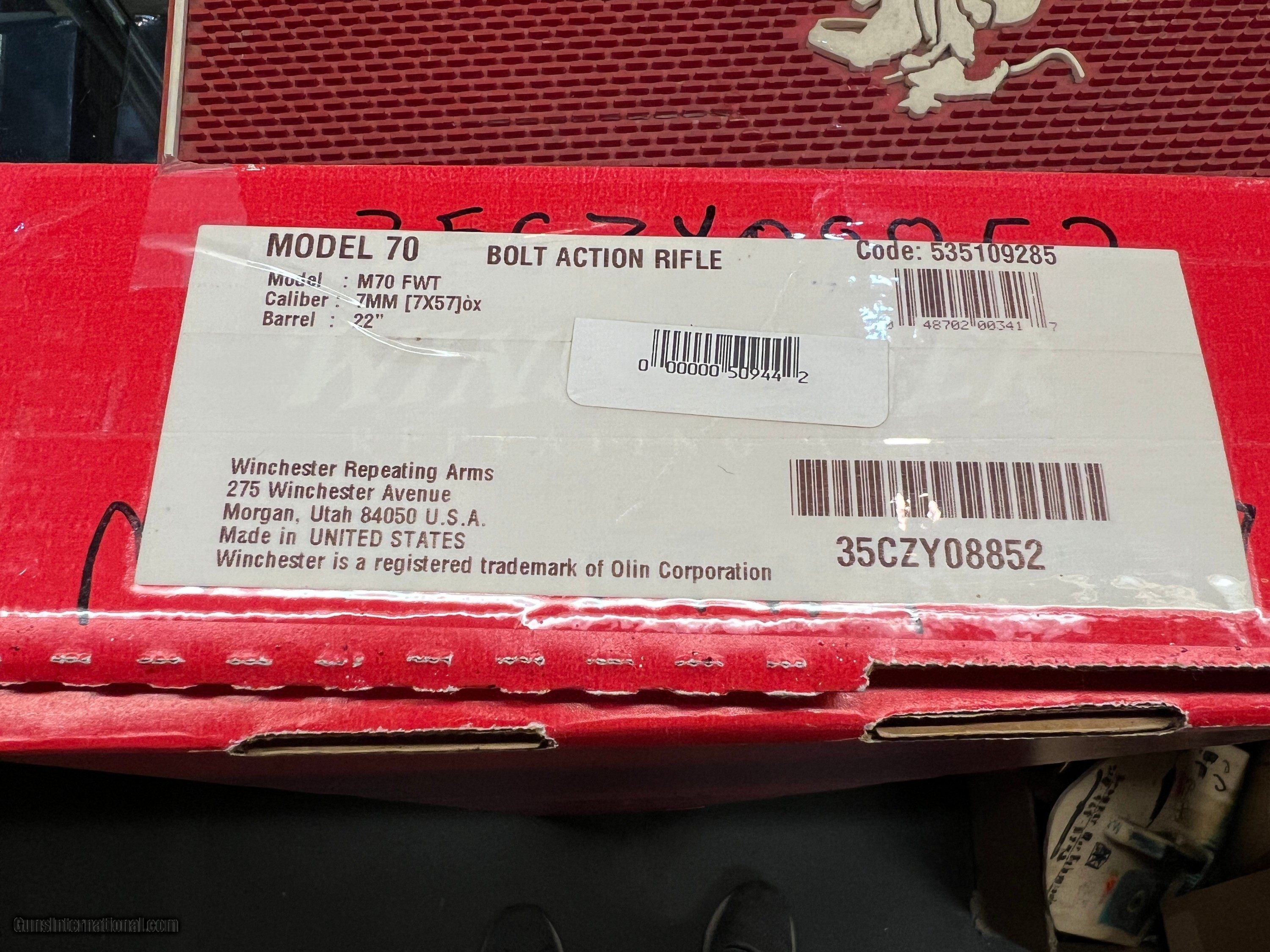 Description: This is a rare Winchester Model 70 Featherweight that has the highly sought after controlled round feed action. This was a special limited production run for the Shot Show. This particular rifle is especially rare since it has the factory Winchester barrel proof and only has the cartridge chambering stamp as pictured. The typical Winchester barrel roll stamp is absent, which may indicate that it was a prototype rifle? The rifle overall is in very good condition, except for the stock belemishes as pictured. Please review the attached photos for overall condition, the matchng factory original box is included. Actual shipping and insurance SOLD Rifle Caliber: 7x57mm Mauser Manufacturer: Winchester Model: 70 Barrel Length: 22 Condition: Very good Metal Condition: Very good Wood Condition: Blemishes as pictured Action: CRF |
