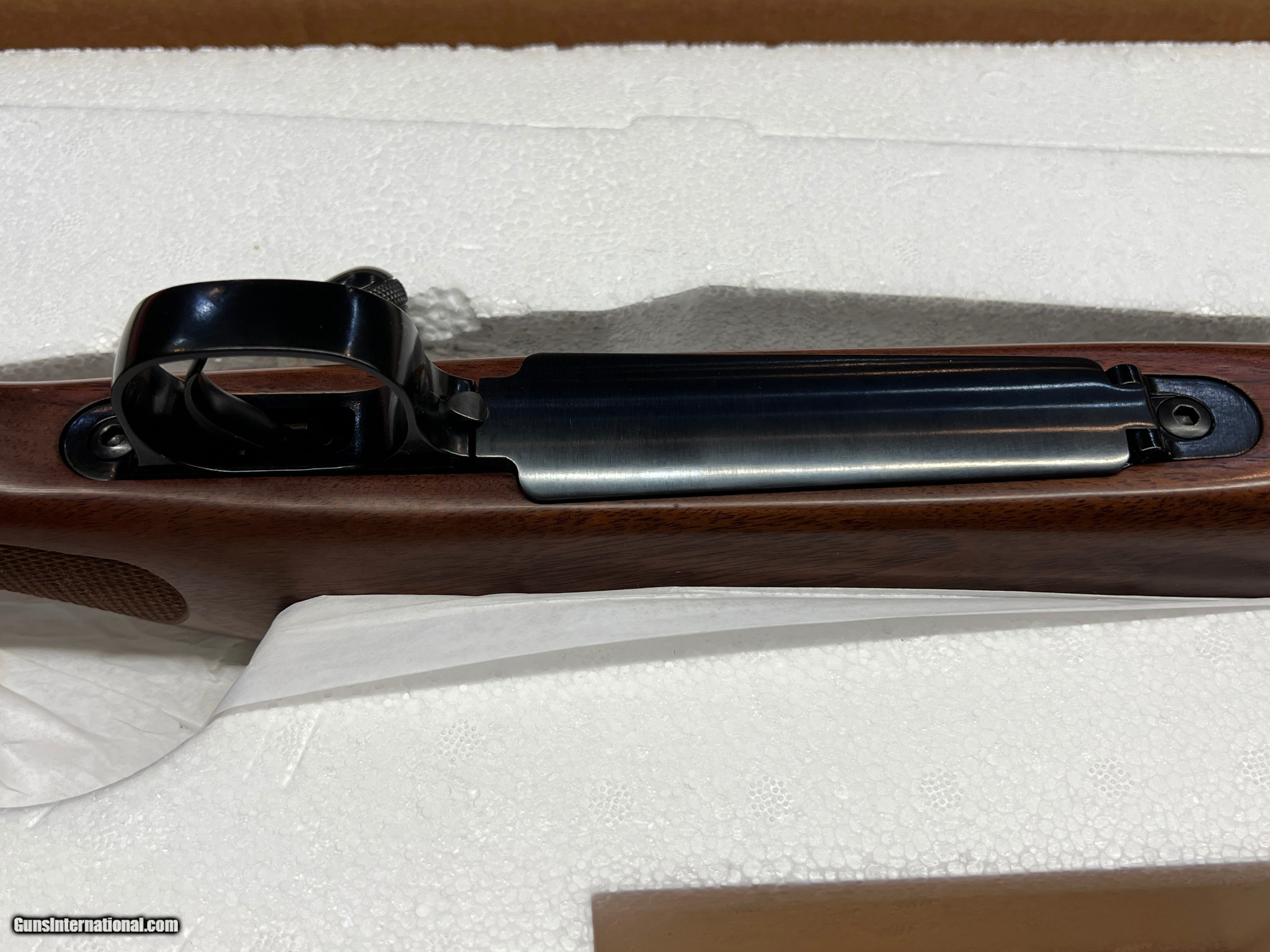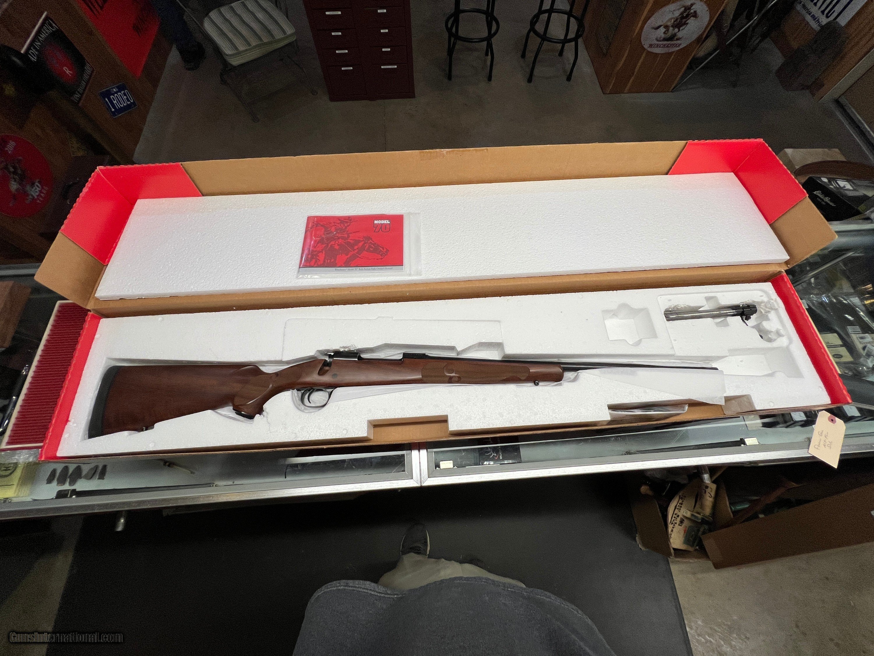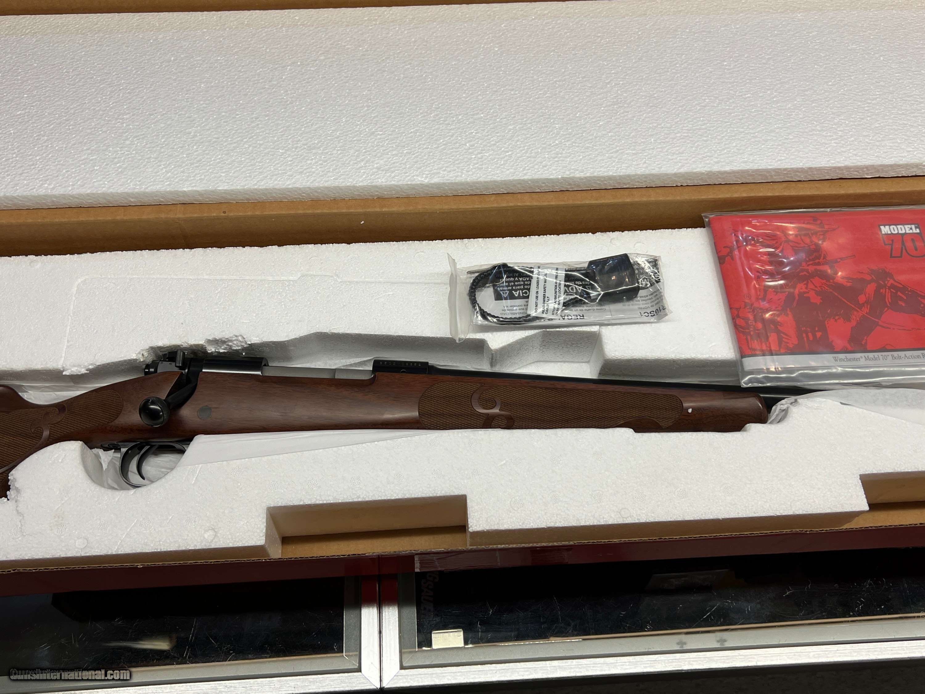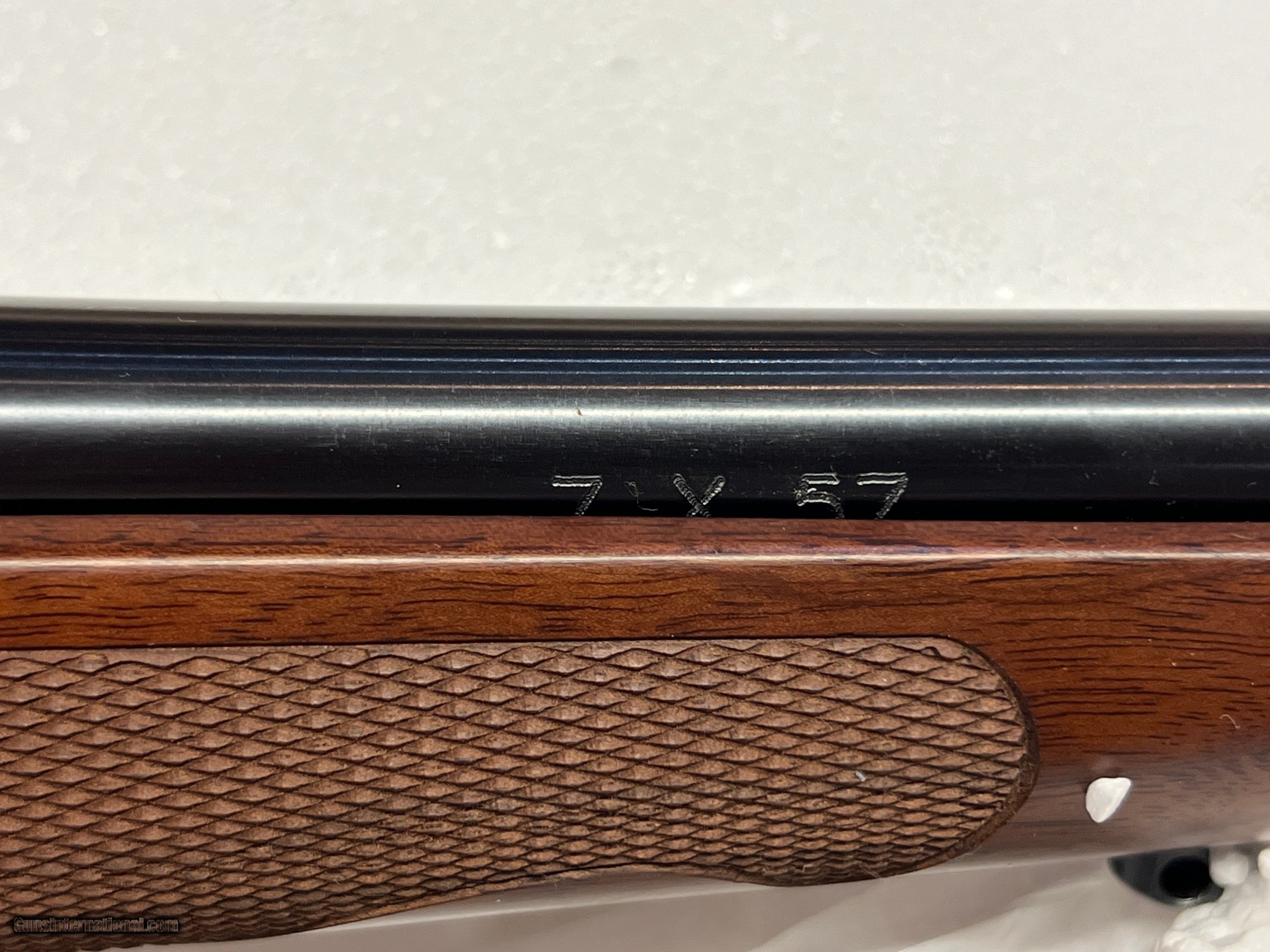 Description: This is a rare Winchester Model 70 Featherweight that has the highly sought after controlled round feed action. This was a special limited production run for the Shot Show. This particular rifle is especially rare since it has the factory Winchester barrel proof and only has the cartridge chambering stamp as pictured. The typical Winchester barrel roll stamp is absent, which may indicate that it was a prototype rifle? The rifle overall is in very good condition, except for the stock belemishes as pictured. Please review the attached photos for overall condition, the matchng factory original box is included. Actual shipping and insurance SOLD Rifle Caliber: 7x57mm Mauser Manufacturer: Winchester Model: 70 Barrel Length: 22 Condition: Very good Metal Condition: Very good Wood Condition: Blemishes as pictured Action: CRF |