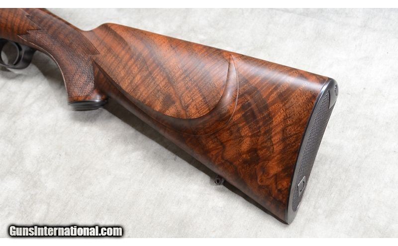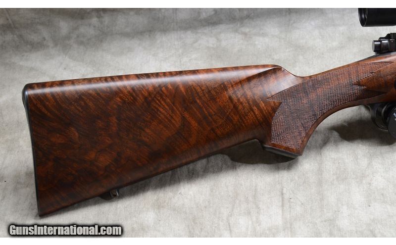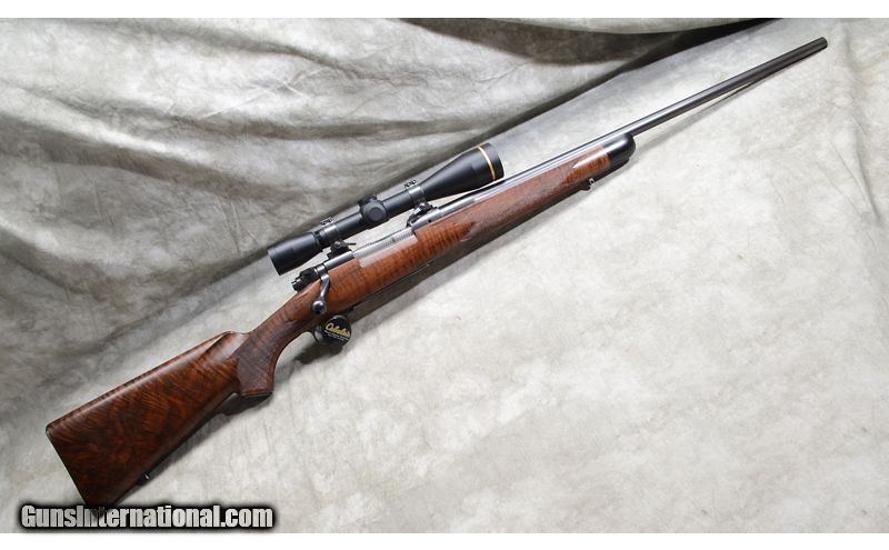 Description: This Winchester is customized by Jim Coffin and C.O. Audette. It features high grade walnut stock with sharp checkering and cheek piece. It has a fully jeweled bolt and the scope is mounted using quick release mounts. It has a black tip cap and it has a steel grip cap. .270 Winchester SOLD Chambers: 4 Metal Condition: Excellent Wood Condition: Excellent overall. There is a small dent on the right side just aft of the floor plate hinge. Bore Condition: Shiny and bright Barrels: 24 inch Triggers: Factory Stock Dimensions: 13-5/8 inch LOP Butt Pad: Steel plate. Weight: 8 lb - 13 oz. Sights: Set up for scope and outfitted with Leupold FX-III 6x42MM scope. Item Location: Rogers |