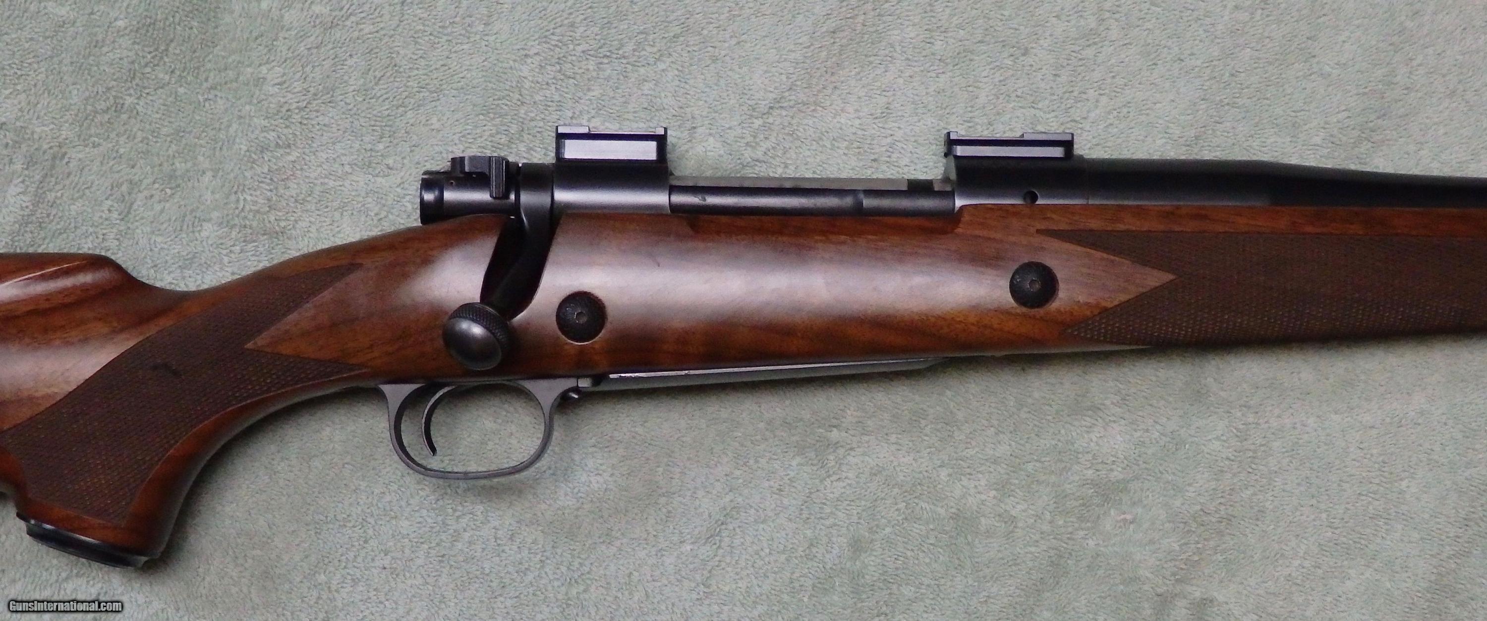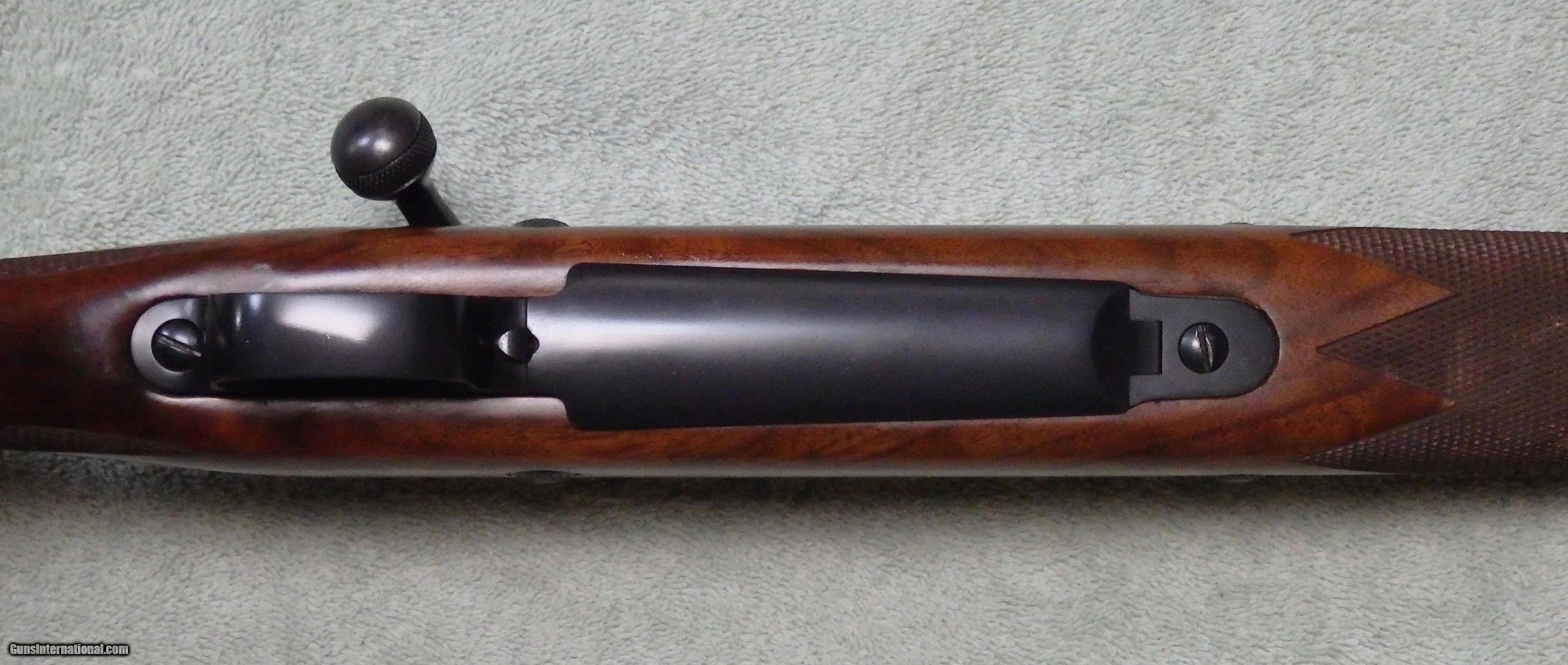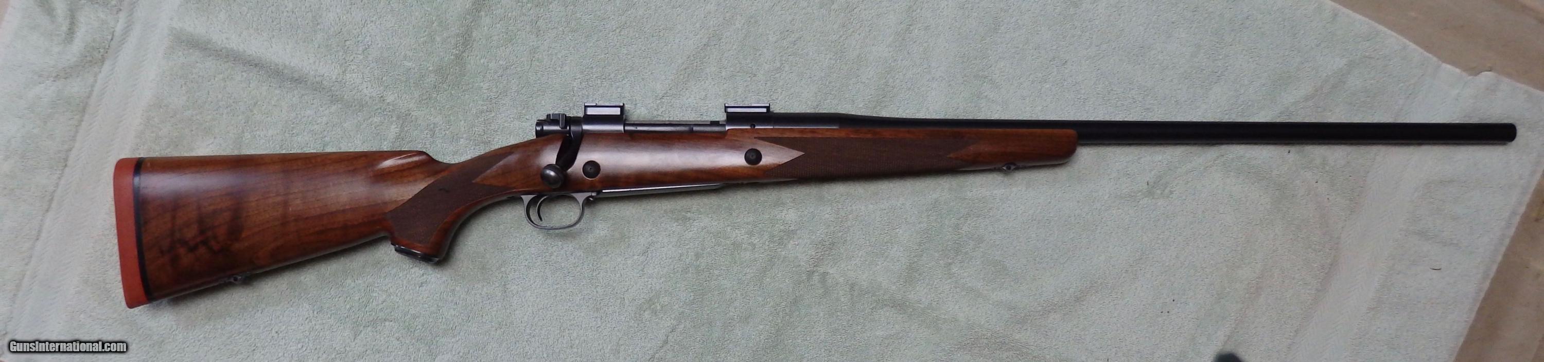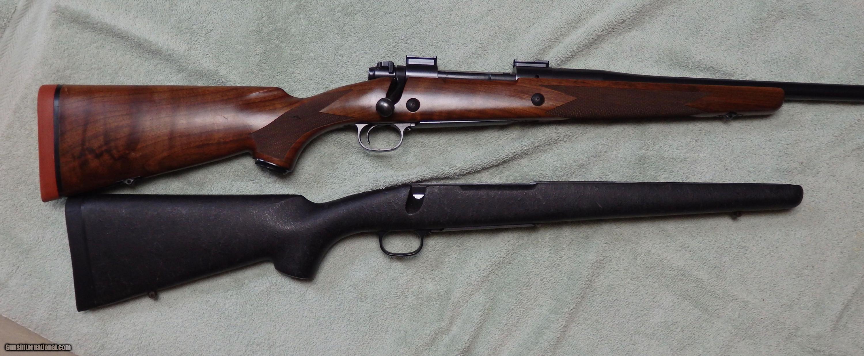 Description: M70 Classic controlled round feed action chambered for .338 RUM. 26" Kreiger barrel with VG bore. 1-piece bottom metal. Excellent bluing with wear on bolt knob and muzzle. Comes with 2 stocks, a walnut factory stock that has been pillar bedded and a H-S Precision synthetic stock that has its own bottom metal. Comes with dies and brass. UPS Ground delivery to your FFL is $35. SOLD |