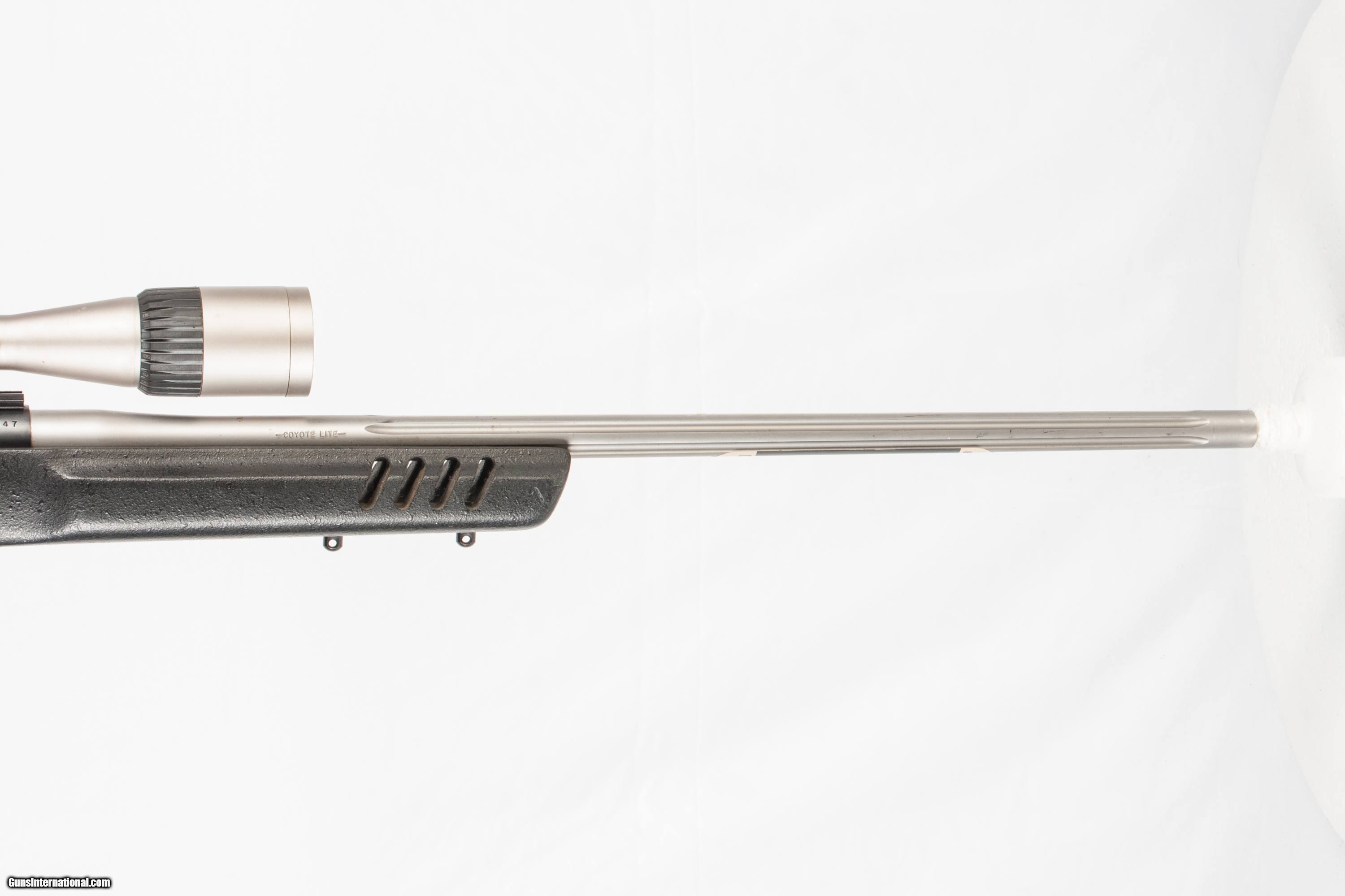 A Winchester Model 70 chambered in 22-250 with a 24 inch barrel with a bright and shiny bore with a weaver 4.5-14X Scope. This firearm is in excellent condition and is covered by Dury's Lifetime Warranty.