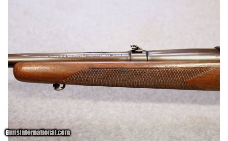 Description: This Winchester model 70 chambered in .22 Hornet features, blue finish, tapped receiver, iron sights, sling mounts, and hardwood checkered stock. There are some spots with finish wear, the bolt handle and magazine plate. .22 Hornet SOLD Metal Condition: Excellent Wood Condition: Great Bore Condition: Bright Barrels: 24 Weight: 8.4 lbs. Item Location: Anchorage, AK |