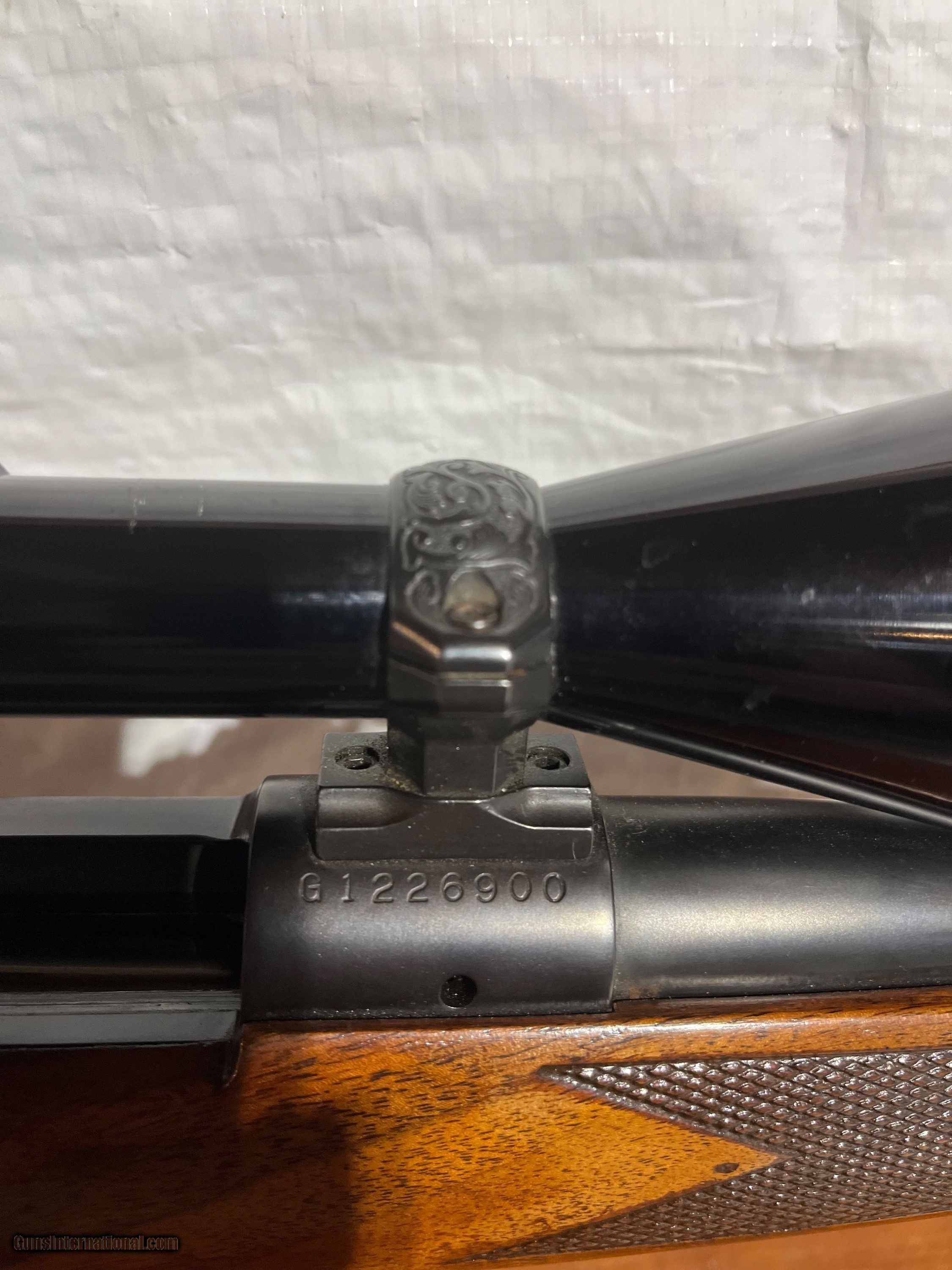 Description: Very nice Winchester model 70 bolt action rifle in 243 Win. Serial G122690 manufactured in the U.S. in 1975 before manufacturing was moved overseas. Very nice wood and metal, jeweled bolt, smooth action and a Bushnell Sportview scope for increased accuracy. Everything locks up and works correctly as it should. Will accept money order, bank check or personal check. Please add 75 for shipping. Must be shipped to an FFL. Curio/Relic: Yes Rifle Caliber: .243 Winchester Manufacturer: Winchester Model: 70 Serial Number: G122690 Condition: Very Good Metal Condition: Very good Wood Condition: Excellent Bore Condition: Excellent Action: Bolt Butt Pad: Factory Sights: Fixed Manufacture Date: 1975 Optic: Bushnell Sportview Scope Price: $1,050.00 Shipping: $75.00 Buy Now Contact Seller |