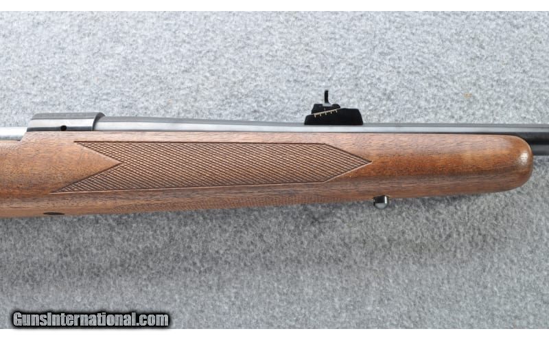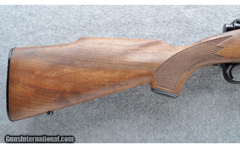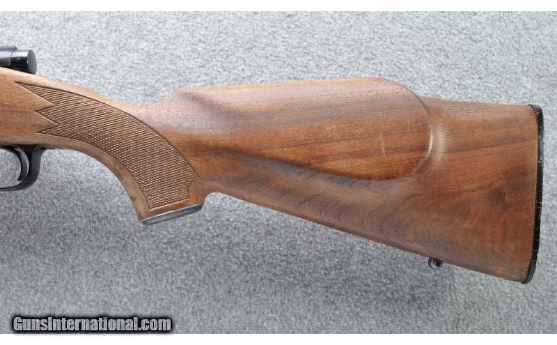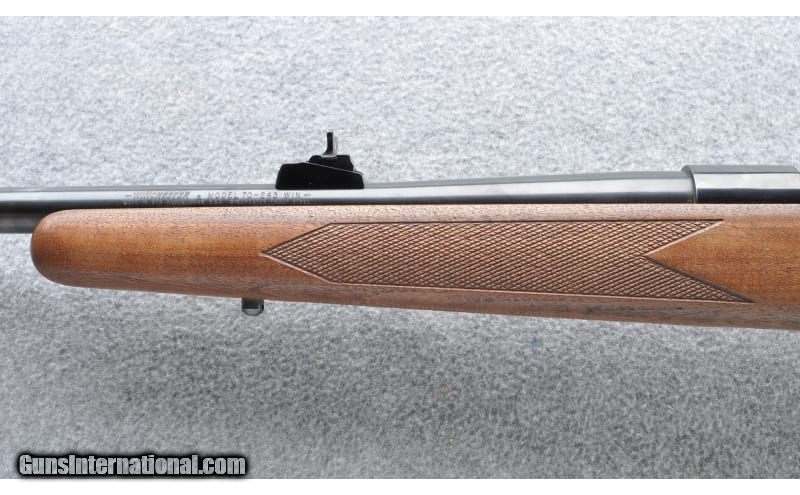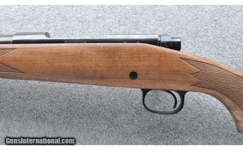 Description: This rifle was made in 1972 and retains the classic Winchester style, with cut checkering, metal grip cap and nice looking wood. .243 Winchester SOLD Chambers: .243 Winchester in a five round blind box magazine Metal Condition: "Good, showing few small scratches and light blue loss. Trigger guard being aluminum, shows some nicks and marred screw head. Wood Condition: The wood shows some very nice color and grain. The butt plate has plenty of dings and scratches Bore Condition: "Very good bore, sharp & bright Barrels: 22 Stock Dimensions: 13 1/2" LOP Fore End: Checkered walnut with sling stud Butt Pad: Hard rubber with Winchester logo Weight: 7 lbs. 8 oz. Sights: Ramped dovetailed blade front (missing Hood) Ramped adjustable for elevation & windage leaf rear Item Location: Grand Junction, CO |