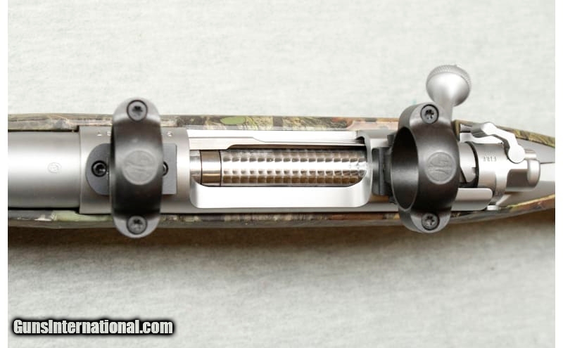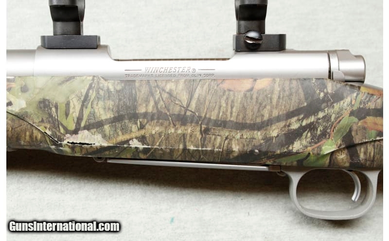 Description: Winchester Model 70 with camo synthetic stock and 24" barrel. Leupold scope rings already mounted. Camo pattern has worn through in a few places on the stock. Metal finish is very good with no signs of wear. .270 WSM SOLD Metal Condition: very good Bore Condition: bright Barrels: 24" barrel Stock Dimensions: 13.5 Fore End: synthetic Butt Pad: rubber Weight: 7 lb - 2 oz Sights: "none, Leupold scope rings Item Location: La Vista, NE |