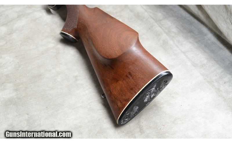 Description: This Model 700 BDL features jeweled bolt, internal magazine with hinged floor plate, walnut Monte Carlo stock and black grip/tip/butt caps. It is no "rack rascal" and shows honest wear from use. .30-06 Springfield SOLD Chambers: 4 Metal Condition: "Good. Shallow pitting on the barrel, as well as blue wear on the floor plate and trigger guard, Wood Condition: "Good to very good. The checkering is sharp, but there is a patch of flattened diamonds near the tip. Bore Condition: Shiny and bright. Barrels: 22-inch Triggers: Factory trigger. Stock Dimensions: 13-1/2 inch LOP. Butt Pad: Black plate. Weight: 9 lb - 13 oz Sights: Gold bead and notch open sights. Outfitted with a Leopold VX-1 3-9X40MM SCOPE. Item Location: Rogers |