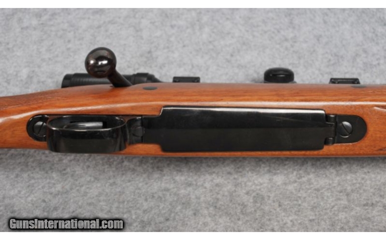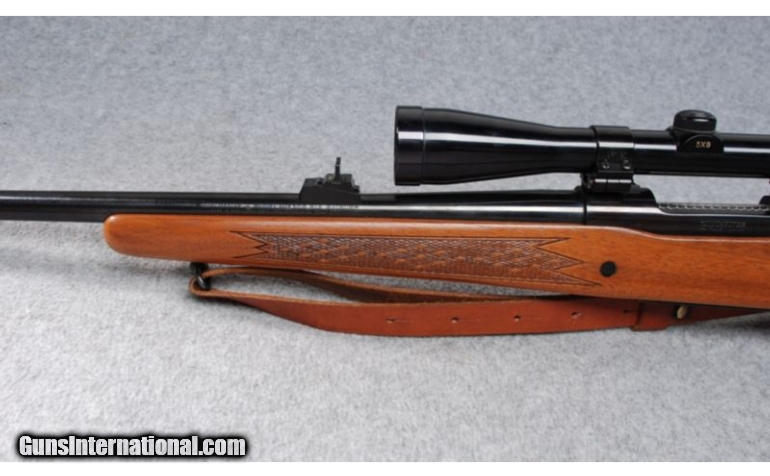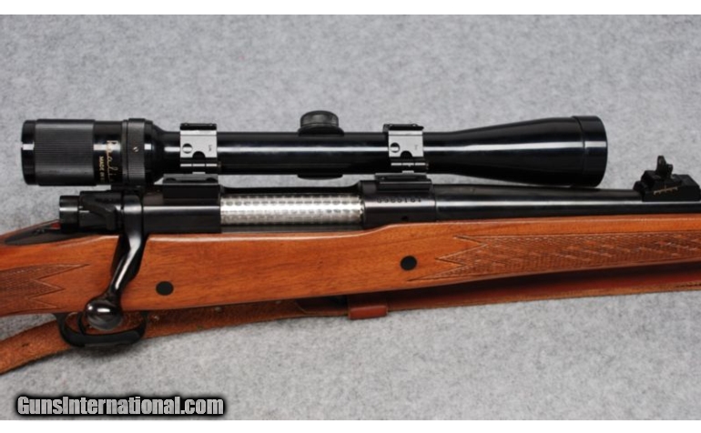 Description: SOLD Caliber Info: .300 Win. Mag. Metal Condition: Insignificant handling marks. Wood Condition: Shows scattered contact marks. Bore Condition: Bright and clean with strong rifling. Barrels: 24". Stock: Walnut with checkered pistol grip and steel grip cap. Stock Dimensions: 13 1/2" LOP Fore End: Checkered Walnut. Butt Pad: Winchester rubber pad. Weight: 8 Lbs. 12 Oz. Sights: Fully adjustable rear sight. Ramped beaded post front sight with hood. Realist 3-9X40 scope with Weaver pivot bases for easy access to iron sights. Extras: Scope, sling. Item Location: Billings, MT |