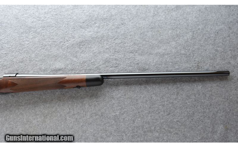 Description: This 2011 Model 70 .338 Win. Mag. apparently left the factory as a Super Grade, as it carries a barrel that's properly stamped "Super Grade". However, someone must have replaced theSuper Grade floor plate with the plain piece it carries currently. The riflefeatures a controlled-feed action and an attractive walnut stock with traditional point pattern checkering and a black fore end tip.It would make a great choice for any medium to large game in North America, including the largest bears andalso boasts a solid track record on African plains game.For the big gamehunter withplans that include travel abroad this may be the one rifle for all occasions. .338 Winchester Magnum SOLD Caliber Info: .338 Win. Mag. Metal Condition: Shows excellent factory finish with a minor contact mark here and there. Wood Condition: Shows excellent factory finish with sharp checkering and a few minor marks. Barrels: 26" with recessed crown. Stock Dimensions: 13 5/8" LOP Butt Pad: Factory Decelerator Item Location: Post Falls, ID |