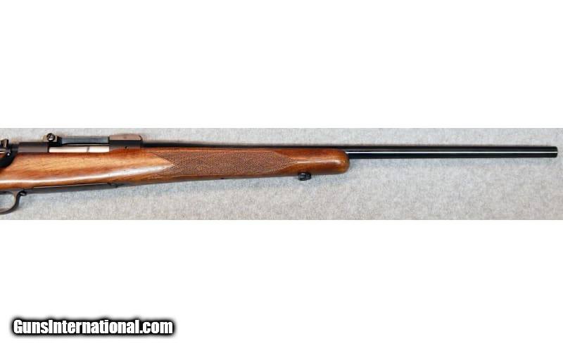 Description: Winchester ~ Model 70 ~ Chambered in .338 Winchester Magnum. Is a bolt action magnum caliber sporting rifle with a traditional aesthetic, and has a 3 round capacity internal magazine. Features a 26" crowned barrel, blued finish, and is seated in a walnut stock with a vented rubber buttpad. .338 Winchester Magnum SOLD Chambers: .338 Winchester Magnum. Metal Condition: Very good condition. Wood Condition: Good condition. Bore Condition: Good condition. Triggers: 4.5 pounds. Stock Dimensions: 14" LOP. Fore End: Walnut. Butt Pad: Rubber. Weight: 9 pounds Item Location: Acworth, GA |