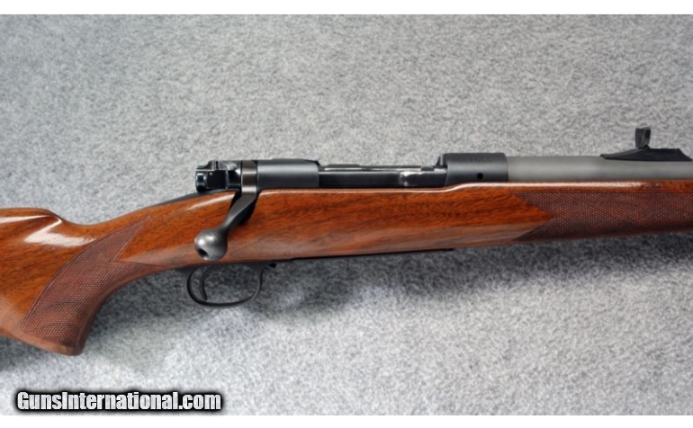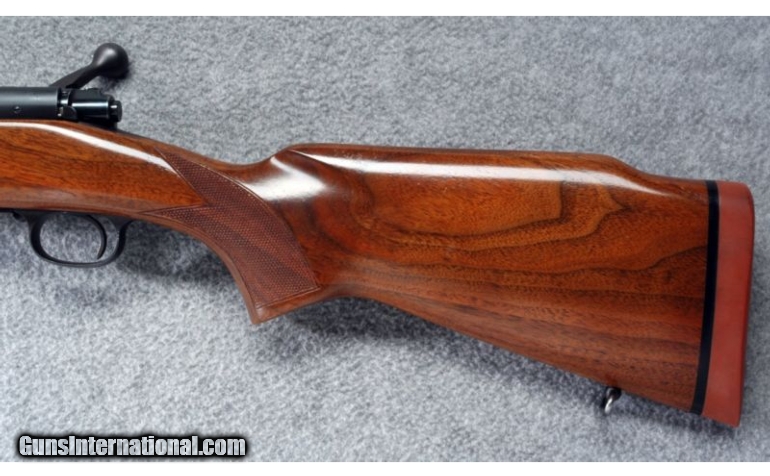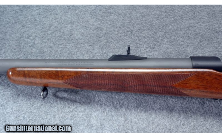 Description: Winchester Model 70 .375 H&H Mag This modern production controlled feed gun is in nice shape. The bore is bright with good rifling and the action is smooth and tight. The exterior shows almost no wear. The feed ramp has been polished and the follower has had some work done to it As with all Cabela's used guns, this gun has a 30 day warrenty period to assure that it feeds, fires, extracts and ejects.. SOLD Barrels: 22 1/2" Heavy Matte Stainless Stock: Checkered Flat Semi-Pistol Grip Walnut Butt Pad: Pachmayr Old English Recoil Pad Weight: 8 Lbs., 2 Ozs. Sights: Hooded Ramped Beaded Blade and Fold Adjustable Rear Item Location: Scarborough, ME |