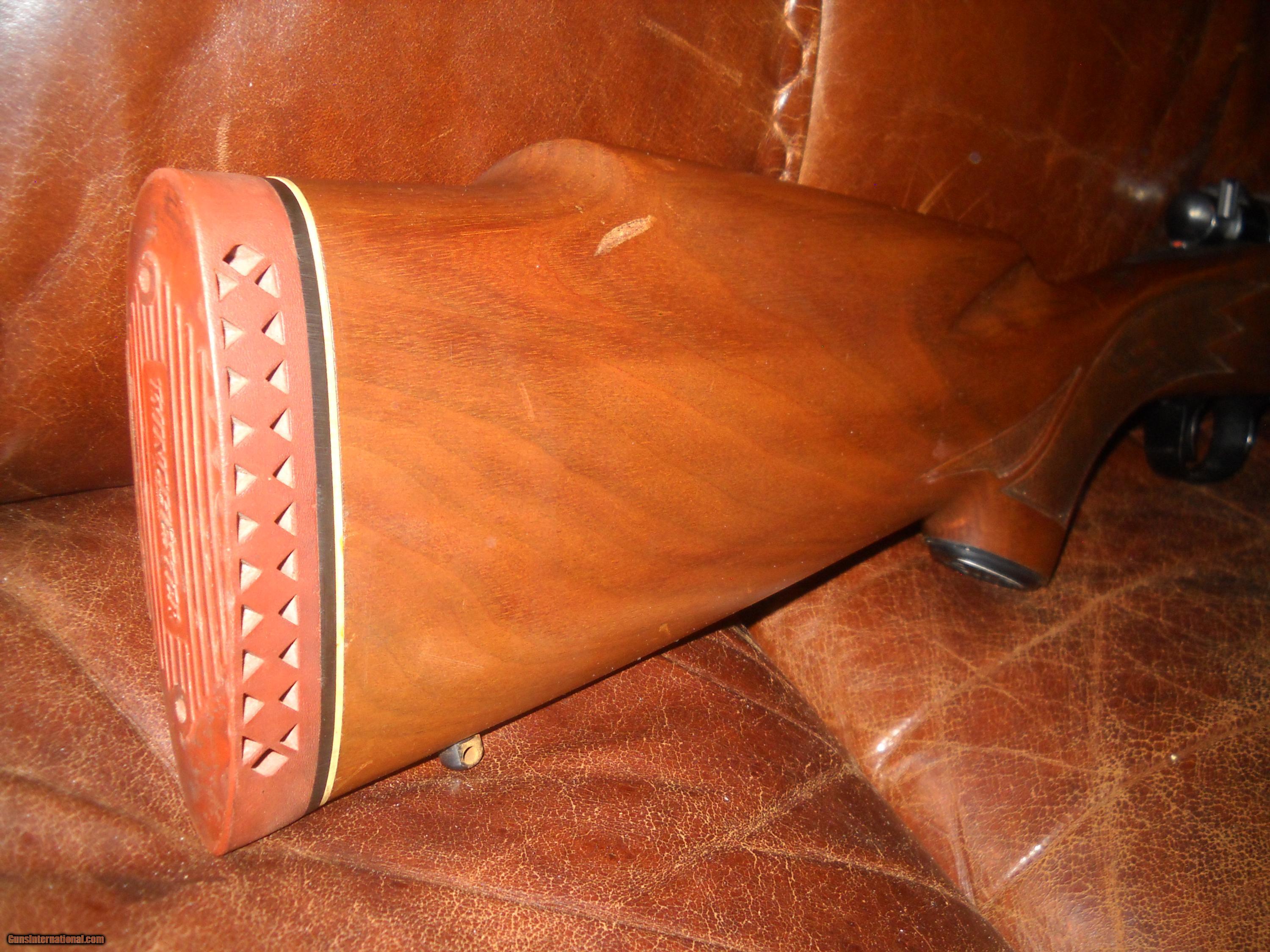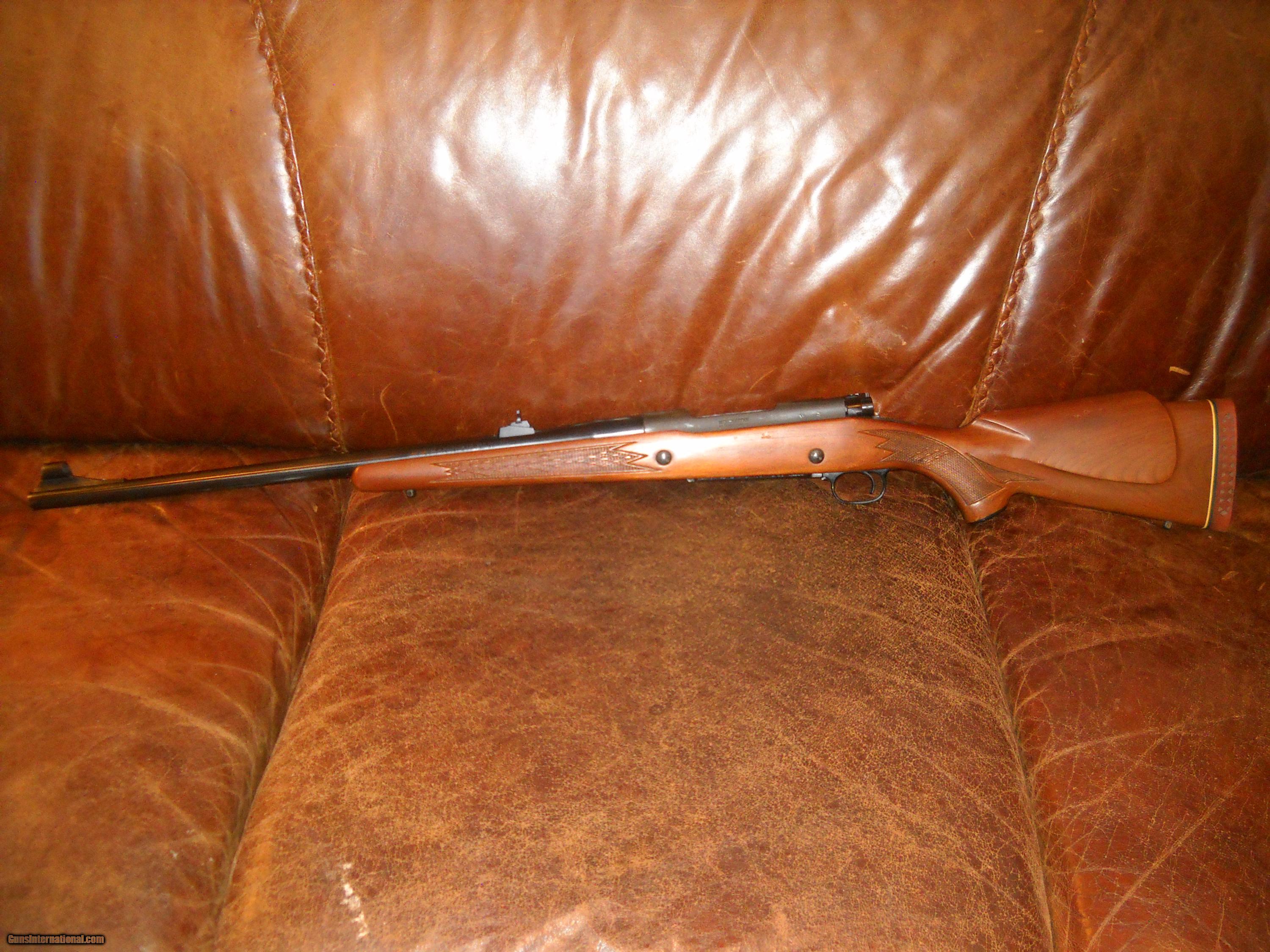 Description: Winchester Model 70 375 H&H Magnum, 24" barrel (excellent bore), Checkered walnut stock, Winchester Recoil Pad, Metal grip cap, Rear express sight, Hooded ramp front sight, (3) position safety. Shows some signs of wear, several nicks, dings, and scuffs but overall excellent condition. $40 ground shipping to FFL. SOLD Manufacturer: Winchester Model: 70 Caliber Info: .375 H&H Magnum |