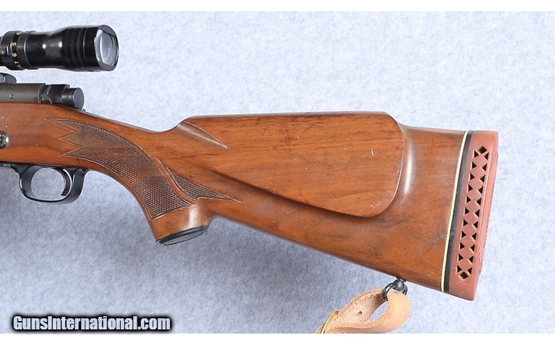 Description: This Winchester Model 70 was made in 1974 and is in very good condition with little wear and tear. It has a Redfield Widefield Lo-Pro 3-9 power riflescope with AccuTrac and AccuRange that is in excellent condition and was a premier scope in its day. The rifle also has adjustable iron sights and a nice leather sling. This is a big game rifle at a budget rifle price that will not last long. .375 H&H Magnum SOLD Metal Condition: Very good. Bluing is good throughout. Wood Condition: Very good. There are minor dings on the stock and a scratch on the right side of the stock. The checkering and finish are in good condition. See photos. Bore Condition: Excellent Barrels: 24 Stock Dimensions: 13¼" Length of Pull Butt Pad: Winchester rubber recoil pad Weight: 10.7 lbs Sights: Redfield Widefield Lo-Pro 3-9 power riflescope with AccuTrac and AccuRange Item Location: Boise, ID |