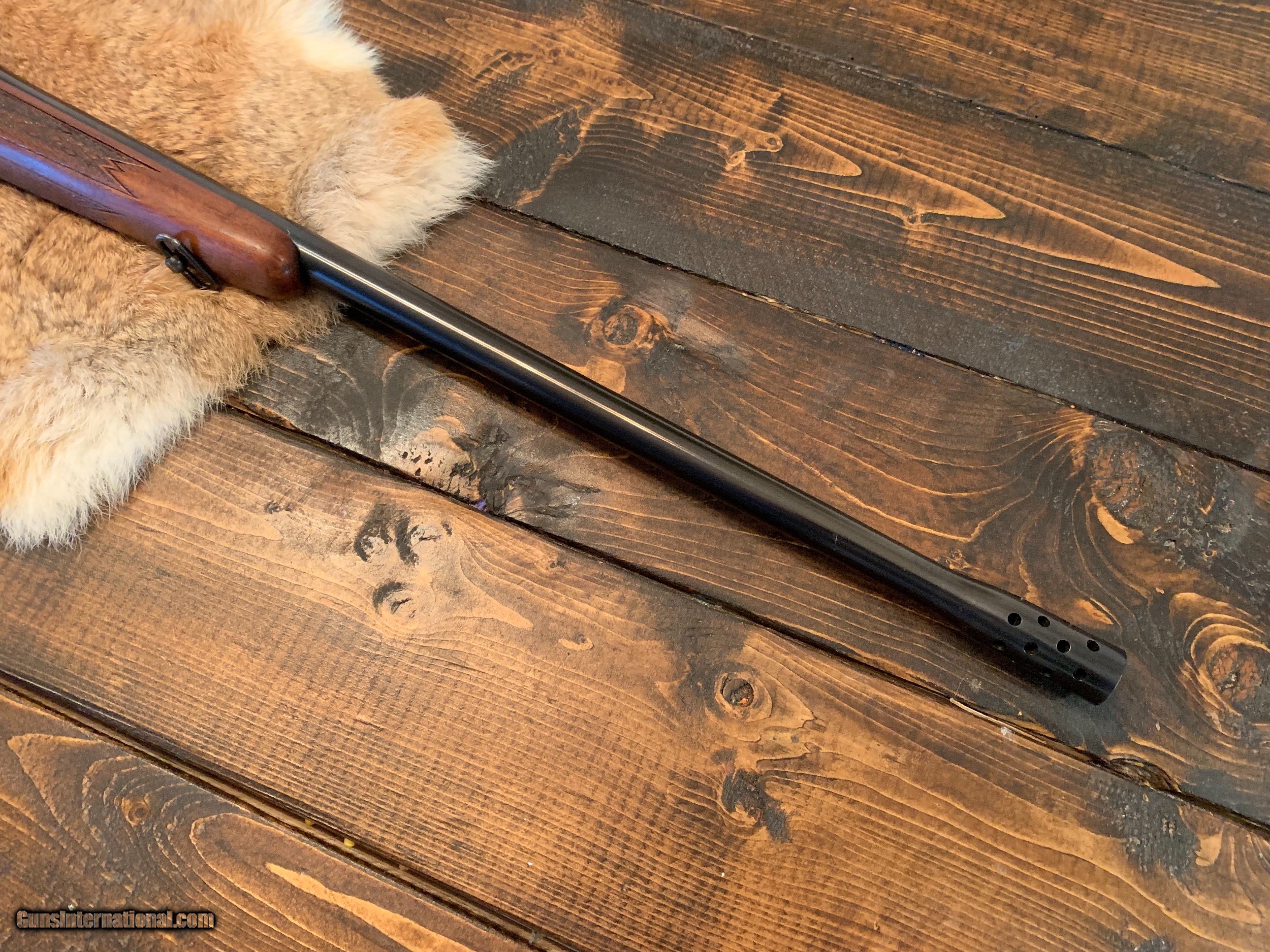 Description: Please look at images for your own evaluation. Rifle made 1971. This Winchester functions as it should and is very clean and shows excellent bluing on all metal surfaces. The stock also shows well but does display handling marks and there is a light colored area near butt / cheek rest area possibly from leather pad at some point. The sights have been removed the rifle does come with mount / rings shown in image. I muzzle device / break has been installed by a professional. This is a very handsome rifle that would make a fine addition to any collection / excellent for big game hunting needs. Please know your state laws. This is a dealer to dealer transaction only. Thank you for looking! Shipping $40 - no sales to CA. SOLD Rifle Caliber: .375 H&H Magnum Manufacturer: Winchester Model: 70 |