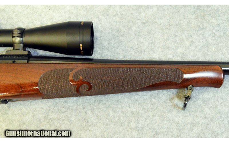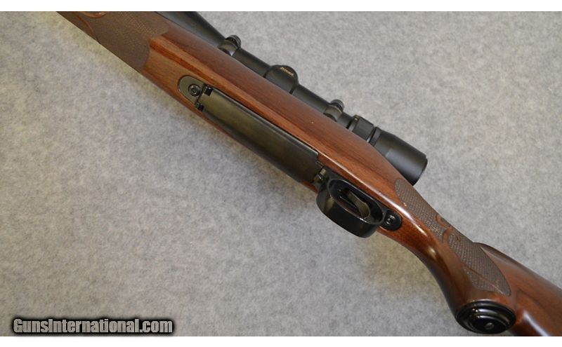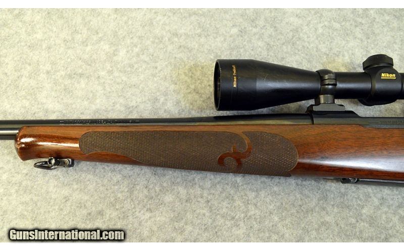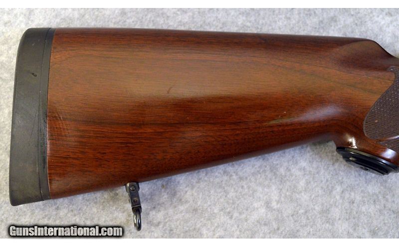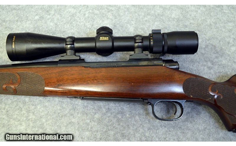 Description: This is a bolt-action Winchester Model 70 rifle chambered in 7 mm WSM. It has a 24" blued barrel. The stock and fore end are a beautiful matching wood, with matching fine checkering. The wood is in excellent condition, with some markings. The metal is also in excellent condition. The bore is bright and shiny. This rifle comes with Nikon 3 – 9X scope mounted. 7mm WSM SOLD Chambers: Bolt-action Metal Condition: Excellent with minimal markings. Wood Condition: Excellent with some markings. Bore Condition: Bright and shiny. Barrels: 24" blued barrel. Stock Dimensions: 14" LOP Fore End: Wooden fore end with fine checkering. Butt Pad: Black soft rubber butt pad. Weight: 8 lb - 6 oz Sights: Nikon 3 – 9X scope. Item Location: Huntsville, AL |