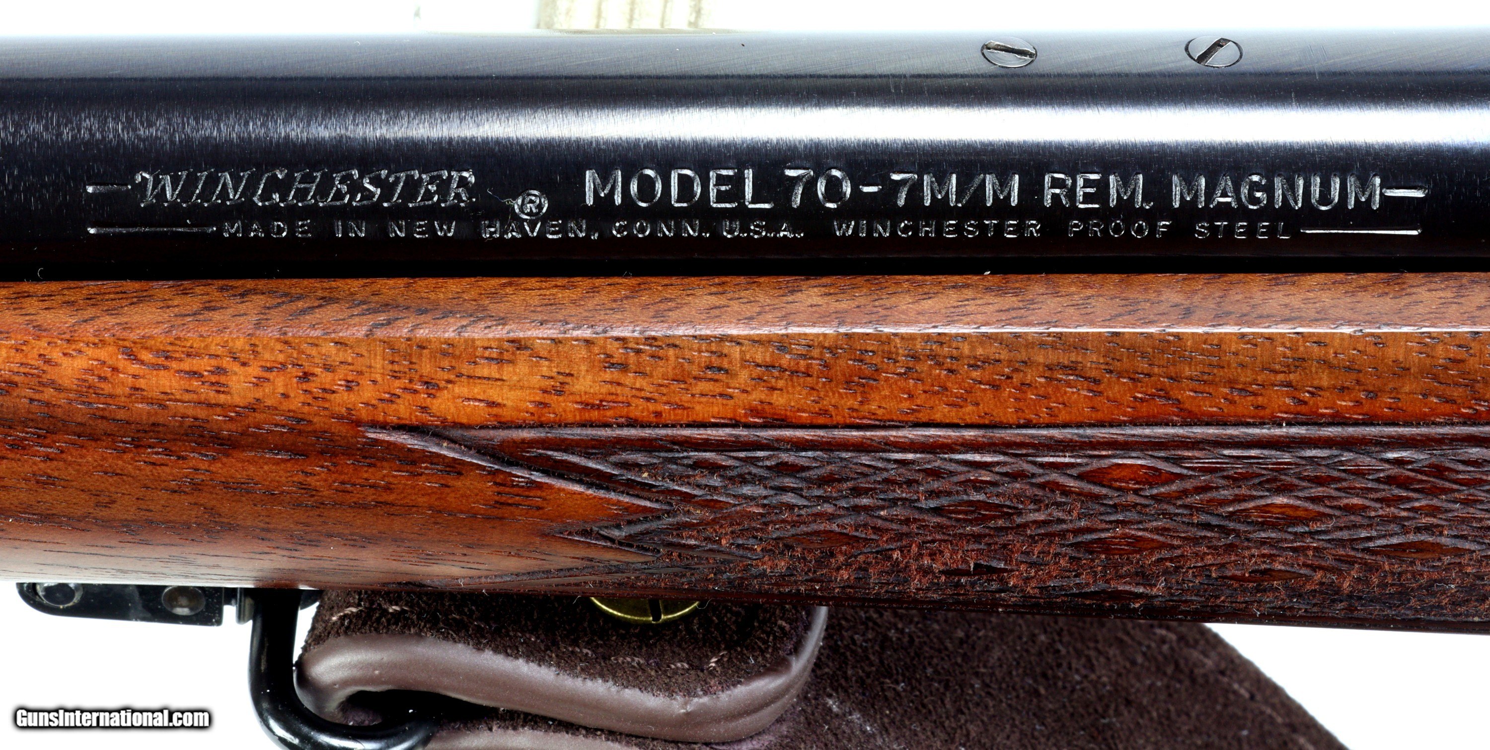 Description: Very nice post-64 Model 70 chambered in 7mm magnum! Ships with a clear Leupold Rifleman 3-9x40 scope and a very nice leather sling. S/N: G988909 MAG: 5 MFG: 1971 BBL:24" TRIGGER: 3lbs WT: 9.2lbs LOP: 13 3/4" FINISH: VG to EXC BOBRE: EXC/MIRROR VISIT SHOOTERSEXCHANGEdotCOM Price reduced 8/05/24 SHIPS INSURED TO THE LOWER 48 FOR $60.00 BUY NOW SHIPS FREE AND NO CC FEE! SOLD Rifle Caliber: 7mm Remington Magnum Manufacturer: Winchester Model: 70 Serial Number: G988909 Barrel Length: 24 Bore: Excellent Condition: Excellent Metal Condition: Excellent Wood Condition: Refinished Bore Condition: Excellent Triggers: 3 lbs LOP: 13 3/4 Weight: 9.2 lbs. Sights: Tapped for irons, but removed Manufacture Date: 1971 Extras: Scope, sling |