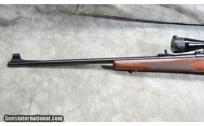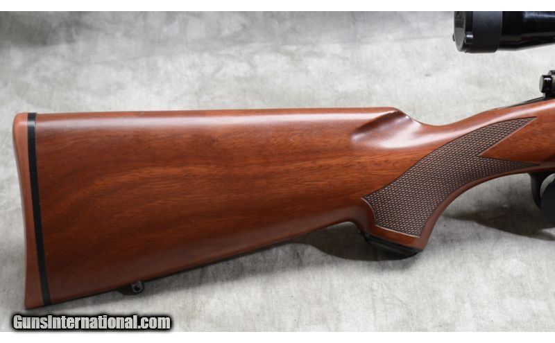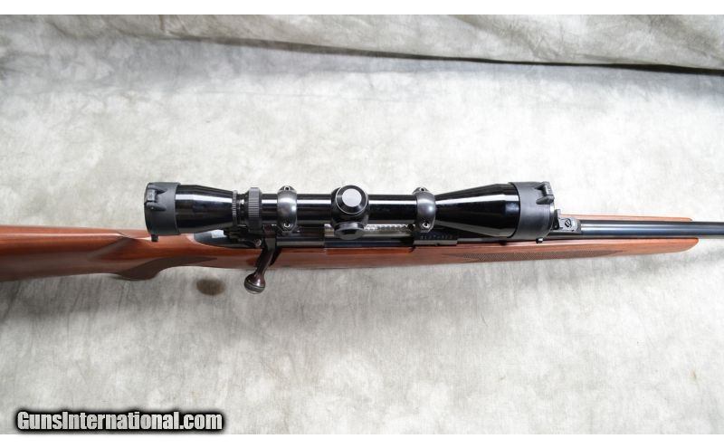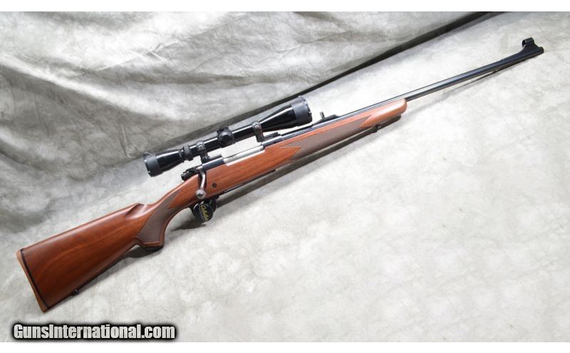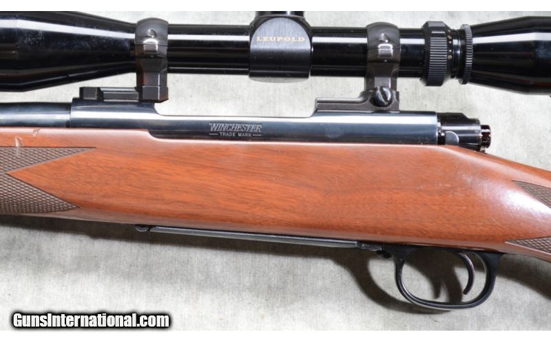Description: This Winchester features walnut pistol grip stock, controlled feed, hinged floorplate, knurled bolt handle and jeweled bolt. It is furnished with a Leupold scope and factory open sights. SOLD Caliber Info: 7MM Remington Magnum. Chambers: 3 round internal magazine with hinged floor plate. Metal Condition: Very good. Jewelling on the bolt is a little worn. Wood Condition: Very good. A couple scuffs at the heel. Bore Condition: Shiny and bright with good rifling. Barrels: 24 inch blue barrel. Triggers: Factory trigger. Stock: Checkered walnut with cheek piece. Stock Dimensions: 13 - 1/2 Inch LOP. Butt Pad: Red rubber pad. Weight: 9 lb. as shown with scope. Sights: Hooded bead front sight and folding leaf rear sight. Furnished with Leupold 3-9x scope. Extras: Scope and manual. Item Location: Rogers,, MN |
