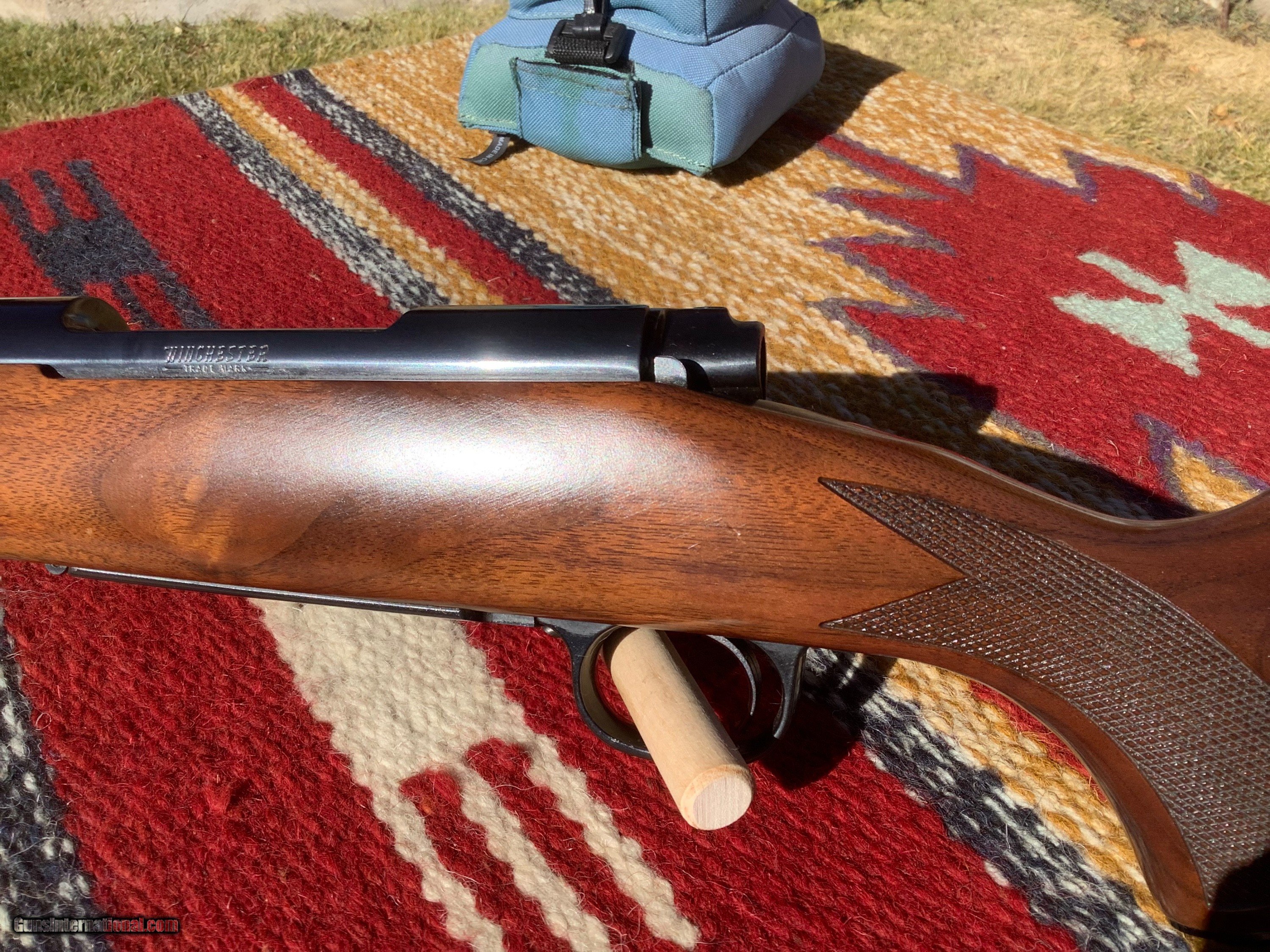 Description: Winchester Model 70 7mm shooting times western, classic sporter, 26 inch barrel, red Winchester butt pad, steel pistol grip cap, this rifle is about as close to a super grade as there is without being one. There are some very subtle impressions, the only one of note is around the forward sling mount, I wonder if it had a tripod on it at one time. I bought the rifle as a Donar for a magnum length project, that project went a different direction. Your luck, now you can have a clean rifle at a decent price. 1500.00, 75.00 shipping. Ship to FFL only, check ,cashiers check or money order accepted. SOLD |