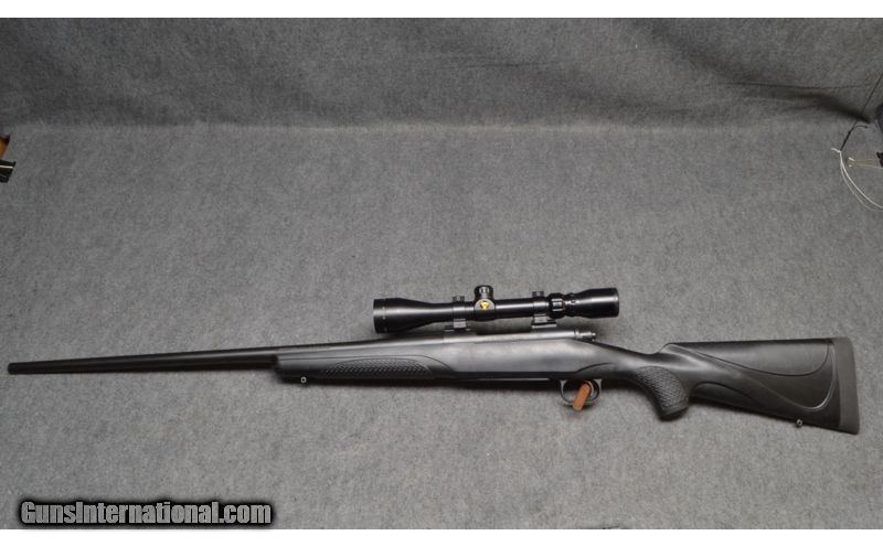 Description: SOLD Caliber Info: 7mm WSM. Chambers: Bolt-action rifle. Metal Condition: Good. Few signs of use or wear. Wood Condition: Good. Few signs of use or wear. Bore Condition: Very good. Barrels: 24" blued steel barrel. Triggers: Single metal trigger. Stock: Black polymer butt stock with textured grips. Stock Dimensions: 15" LOP. Fore End: Black polymer furniture with checkered hand grip. Butt Pad: 1" black rubber recoil pad. Weight: 7lbs-10oz. Sights: Mounted Simmons 3-9x40 scope. Item Location: Wichita, KS |