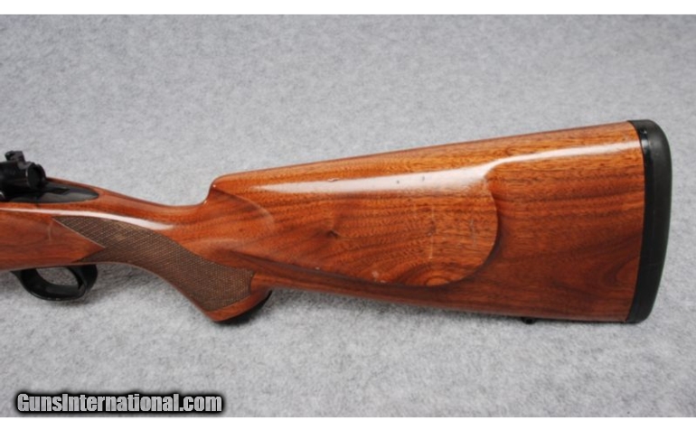 Description: SOLD Caliber Info: .300 Win. Mag. Metal Condition: Shows some bluing wear and scratches. Wood Condition: Shows numerous contact and handling marks. Bore Condition: Bright and clean with strong rifling. Barrels: 26" with muzzle brake. Stock: Walnut with checkered pistol grip and raised cheekpiece. Steel grip cap. Stock Dimensions: 13 3/4" LOP Fore End: Walnut with wraparound checkering. Butt Pad: Rubber. Weight: 8 Lbs. Sights: Leupold bases. Extras: Leupold bases. Item Location: Billings, MT |