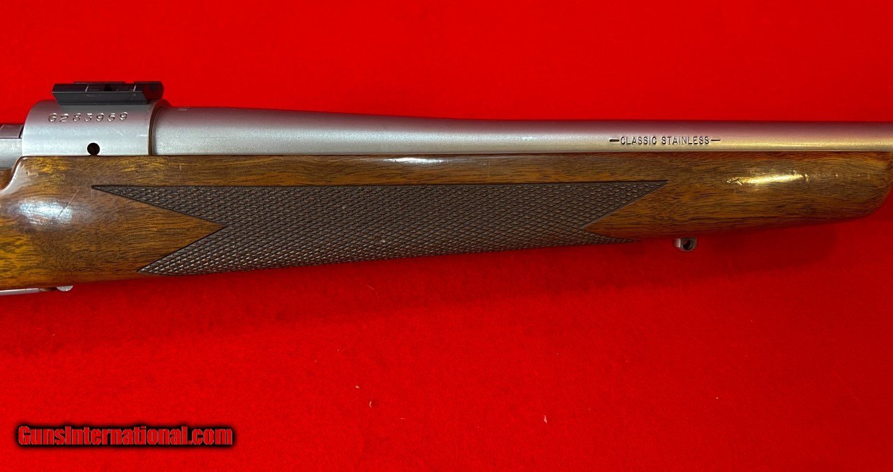 Description: Winchester Model 70 Classic stainless sporter chambered in 7mm RM, 26" stainless barrel with a walnut stock. Rifle is all original and has been used in the field with some marks on the stock from use. This rifle was manufactured in New Haven, CT and features the control round feed Pre 64 style action. $50 shipping SOLD |
