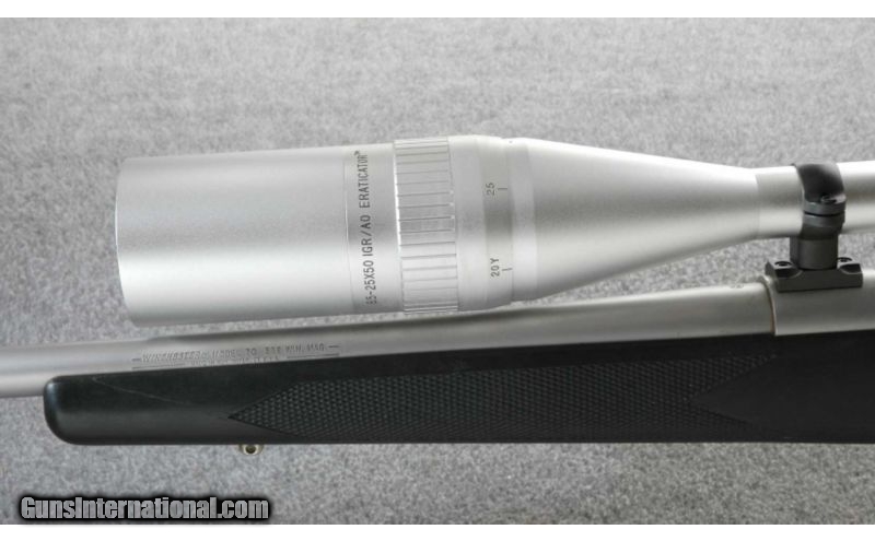 Description: SOLD Caliber Info: .338 Win. Mag. Metal Condition: Excellent Bore Condition: Excellent Barrels: 24 inch barrel Stock: Synthetic pistol grip stock Stock Dimensions: 13 3/4 inch LOP Butt Pad: Winchester rubber pad Weight: 9 lbs. 10 oz. with scope Sights: Mueller 8.5-25 IGR /AO Eraticator scope Item Location: Lehi, UT |