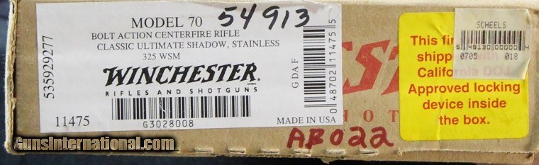 Description: .325wsm, G3028008, 24 inch barrel, silver-stainless finish, composit stock, no barrel sights. Condition: NIB, manufactured in New Haven before the 1996 shut down. SOLD |