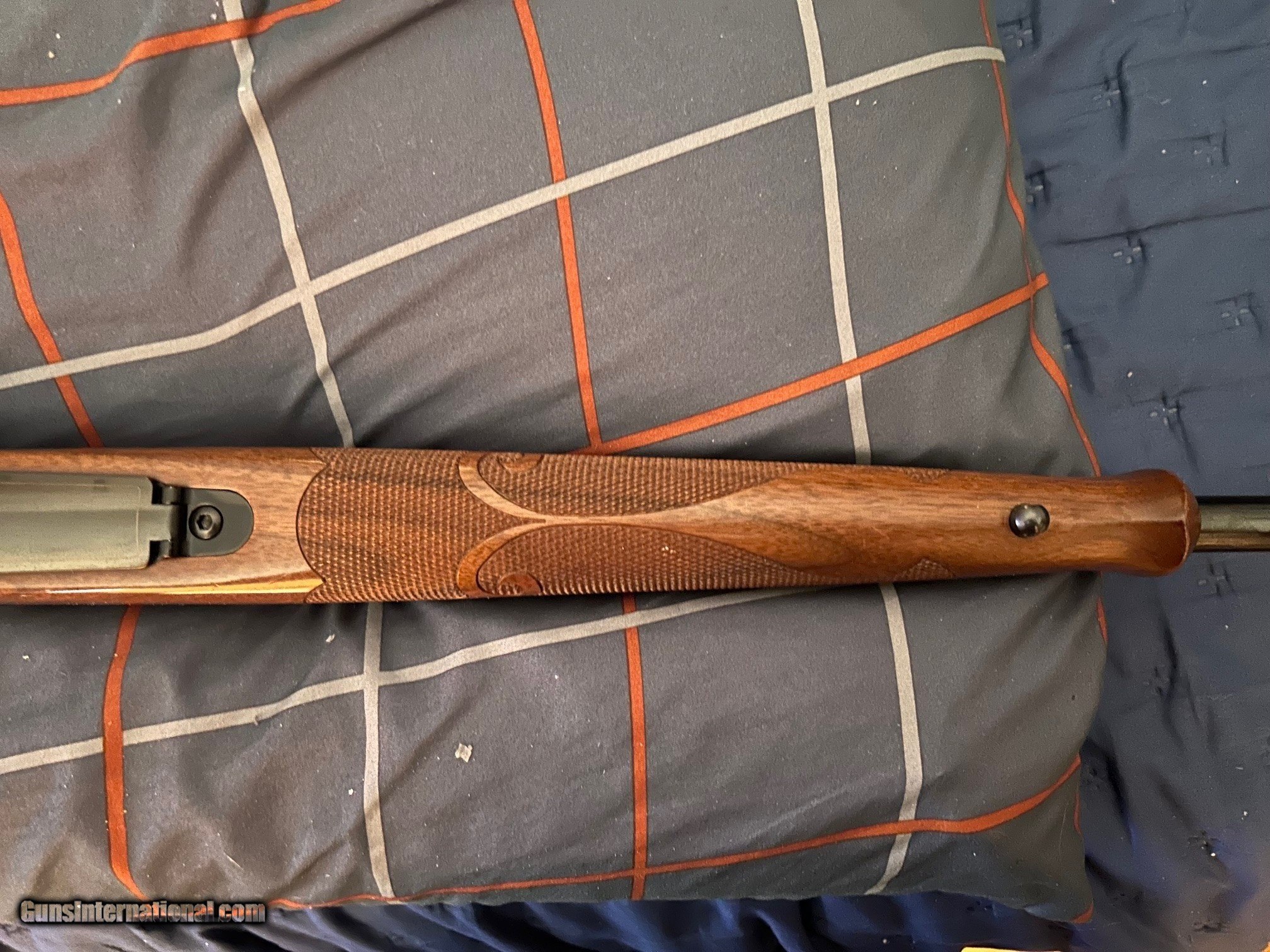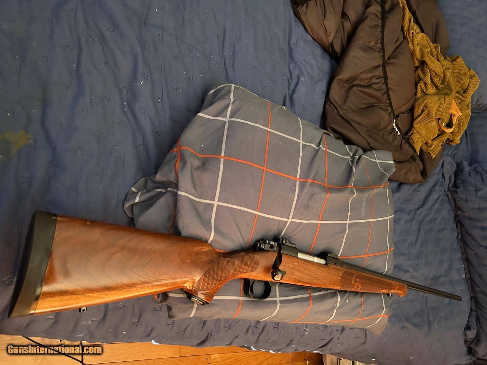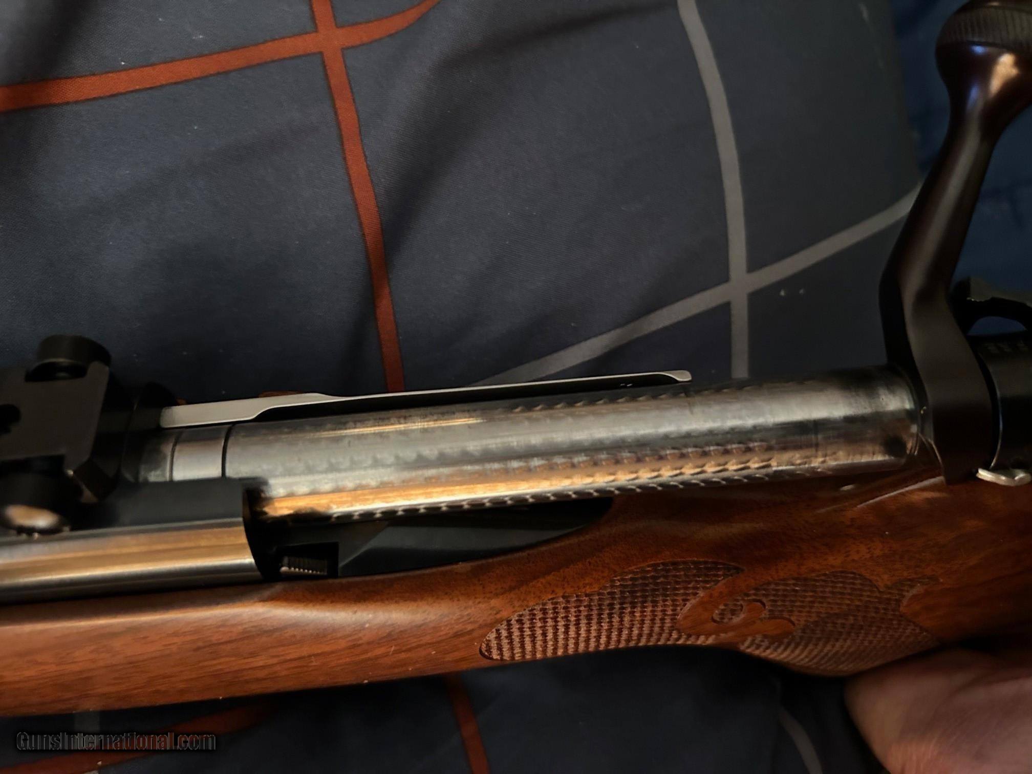 Description: Description: The Model 70 Featherweight Deluxe was introduced in 2008. It came with a factory Pachmayr Decelerator pad for the first time and an improved adjustable trigger. This example has a special floorplate that denotes it as "2008 Model 70 Limited Edition". It is a beautiful rifle with a deluxe American Walnut stock with fleur-de-lis checkering and a Schnabel forearm. This rifle has the controlled round feeding like the pre-64 models that made this model line famous. It has a long Mauser-style extractor and a jeweled bolt left bright. It is chambered in .270 Winchester and is in like new condition. The factory high gloss blue finish rates 99%. There are no signs of wear or thinning on any of the blued parts. The gold writing and outline on the floorplate look sharp and clean. The bore is minty and bright in this rifle. The rifling has sharp lands and grooves. The trigger guard and magazine housing are alloy and have a black finish that is nearly perfect, The factory-checkered American Walnut stock is also in excellent condition overall. The checkering is sharp and the stock looks minty. The stock features factory sling swivel studs, a black pistol grip cap, and the factory recoil pad mentioned previously. The length of the pull is 13.75 inches to the end of the pad. Everything works on this rifle 100% like the day it left the factory. This rifle comes with scope bases. This series of Winchester Model 70s was made to be as close to pre-64 rifles as possible. Winchester went back to the features that made the Model 70 the American "Gold Standard" for bolt action rifles. If you have been looking for the perfect big game rifle that you would be proud to carry in the field this rifle would be an excellent choice. The .270 Winchester chambering gives this rifle the versatility to shoot near or far and handle just about any big game you can find in North America. The size, weight, and balance point are perfect with this Leupold scope mounted up, and all you need to do is zero it at the range and it'll be ready to go. Layaway 1/3 down 90 days Shipping: $75, insurance extra upon request Optional Hard Case case $20 Payment: Personal Check, Money Order, Cert. Check, or Zelle randywine2000yahoo (703) 858-2881 Returns without damage or alteration within 3 days of delivery minus 20% restocking fee SOLD Rifle Caliber: .270 Winchester Manufacturer: Winchester Model: Model 70 Featherweight 2008 Limited Edition Serial Number: 35AMP04984 Condition: Like New Metal Condition: Excellent Wood Condition: Excellent Bore Condition: Excellent Action: Bolt Triggers: Single Stock: American Walnut Butt Pad: Factory LOP: 13 3/4 Finish: Satin Sights: N/A Manufacture Date: 2008 Extras: Scope Bases Case: Optional |