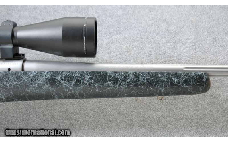 Description: Whether you're in glaring heat or bone-chilling cold, the Model 70 Extreme Weather Stainless Steel Bolt-Action Rifles provide pinpoint accuracy round after round. Their free-floating, fluted stainless steel barrels shoot with 1-MOA accuracy. Bell and Carlson™ composite stock with one-piece aluminum bedding block is trim, lightweight and ergonomic, and it's reliable in temperatures from -50°F to 140°F. Sculpted cheekpiece ensures proper eye-to-scope alignment. Pachmayr® Decelerator® pad lessens the recoil felt when shooting magnum cartridges. Pre'-64-type claw extractor with controlled round feed removes cartridges easily and consistently. Cartridge-feed lips are machined as a part of the receiver for the proper feed every time. Three-position safety has a middle position between fire and safe that locks the firing pin, yet allows the bolt to be operated for added safety when checking the chamber or unloading. MOA trigger system. SOLD Manufacturer: 2015 Caliber Info: .300 Win. Mag. Metal Condition: Good with some scratches and nicks Bore Condition: Very good, sharp and bright Barrels: 26 inch stainless, fluted, sporter contour barrel with 1:10 inch twist Triggers: MOA trigger Stock: Bell & Carlson composite pistol grip stock with cheek piece and aluminum bedding block Stock Dimensions: 13 3/4 inch LOP Butt Pad: Decelerator pad Weight: 8 lbs. 12 oz. with scope Sights: Vortex Viper 4-16x50 scope Item Location: Lehi, UT |