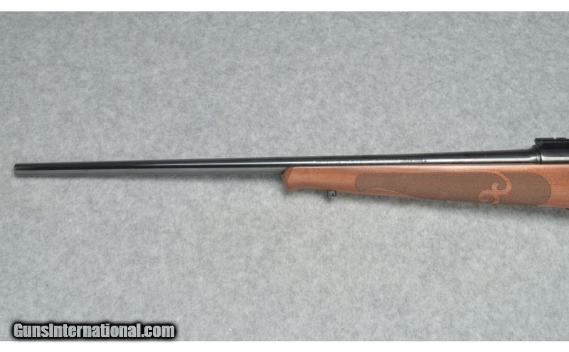 Description: This Winchester model 70 is in excellent condition with a 22 inch blue round barrel that has a very clean bright bore. The walnut stock is in excellent condition with on very minor field mark on the right side of the stock. The metal is also in excellent condition with no visible field marks. Over all this is very good looking rifle that would be great for hunting big game or for taking to the range. SOLD Caliber Info: .30-06 Sprg. Chambers: Bolt action repeater. Metal Condition: Excellent. Wood Condition: Excellent. Bore Condition: Clean and bright. Barrels: 22 inch blue round barrel. Triggers: Single blue trigger. Stock: Walnut stock with black grip cap, sling studs and checkering on the pistol grip. Stock Dimensions: 13 1/2 inch LOP. Fore End: Matching walnut fore end with sling studs and checkering. Butt Pad: Orange rubber Winchester butt pad. Weight: 6 Lbs. 8 Oz's. Sights: Mounted bases. Extras: Comes with mounted scope bases. Item Location: Sun Prairie, WI |