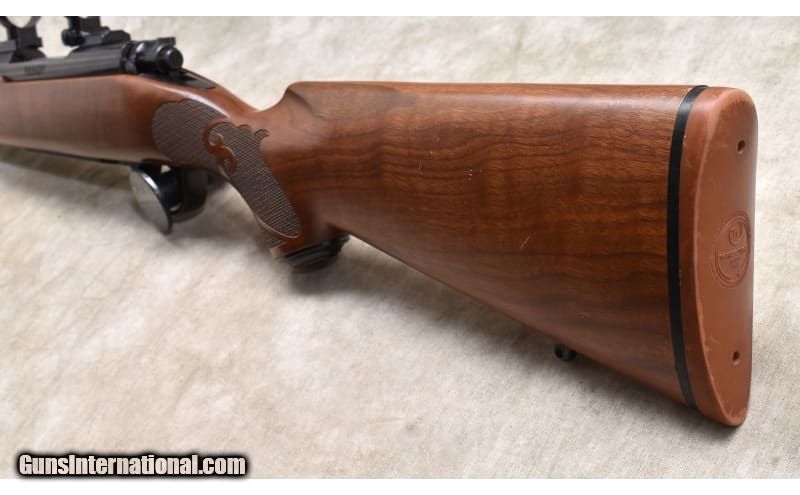 Description: This Model 70 Feather weight is in overall very good condition. Few rifles can be identified in an instant like the Featherweight. It is justly famous among hunters everywhere. Features include A Three-Position Safety is highlighted by a jeweled bolt body with knurled bolt handle. Inside is the M.O.A. Trigger System. The forged steel receiver starts as a forged from a solid block of steel. (What could be stronger?) This is expensive to do, but the Model 70 is worth it. .30-06 Springfield SOLD Chambers: 5 Round. Metal Condition: Excellent. Slight handle marks on trigger guard. Wood Condition: Excellent. Minor handle marks. Bore Condition: Bright and shiny with good rifling. Barrels: 22 Inches. Triggers: M.O.A. Trigger System. Stock Dimensions: LOP:13.5 Inches. Fore End: Grade I walnut with Satin finish. Cut checkering and Schnabel forearm. Butt Pad: Winchester red rubber Weight: 6lbs 15 oz Sights: Drilled and Tapped for Scope. Item Location: Rogers |
