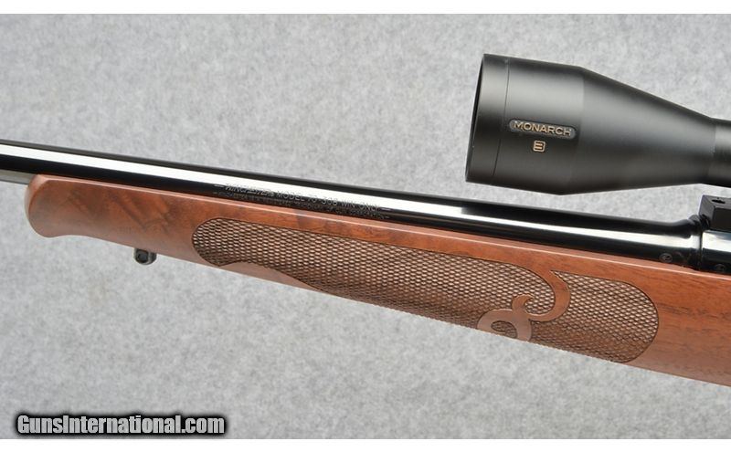 Description: Browning production rifle, with pre-64 style controlled round feed action, satin finished walnut stock with fleur-de-lis checkering. Couple minimal handling marks. Pre-owned in excellent overall condition. .308 Winchester SOLD Metal Condition: Polished Blue Wood Condition: Satin finished Walnut Bore Condition: "Bright , Sharp Barrels: 22 Inch Tapered Stock Dimensions: 13 3/4 inch Fore End: Schnabel Tip Butt Pad: Decelerator Weight: 8 Lbs. 2 Oz. Sights: "Nikon Monarch 3, 2.5-10 x 42 mm Item Location: Buda, TX |