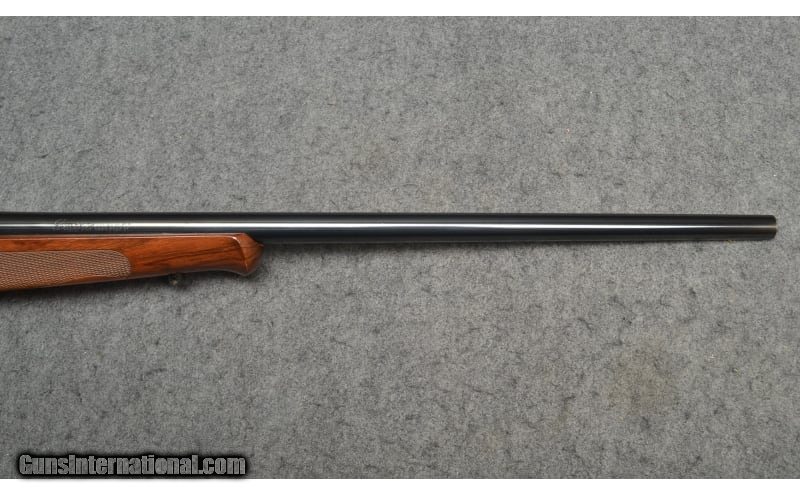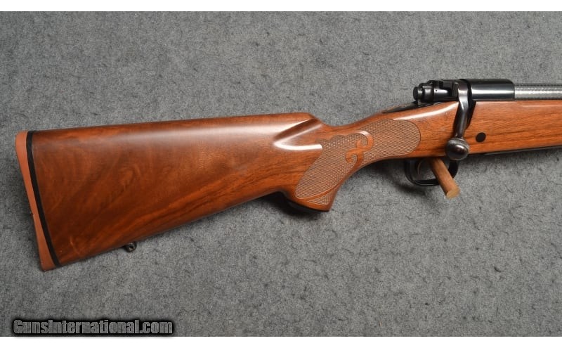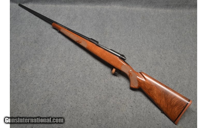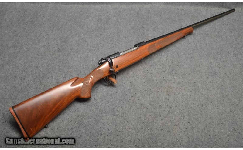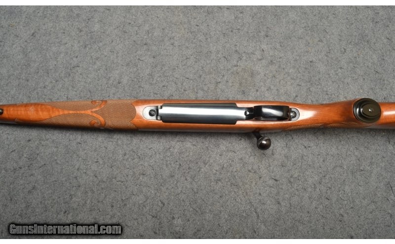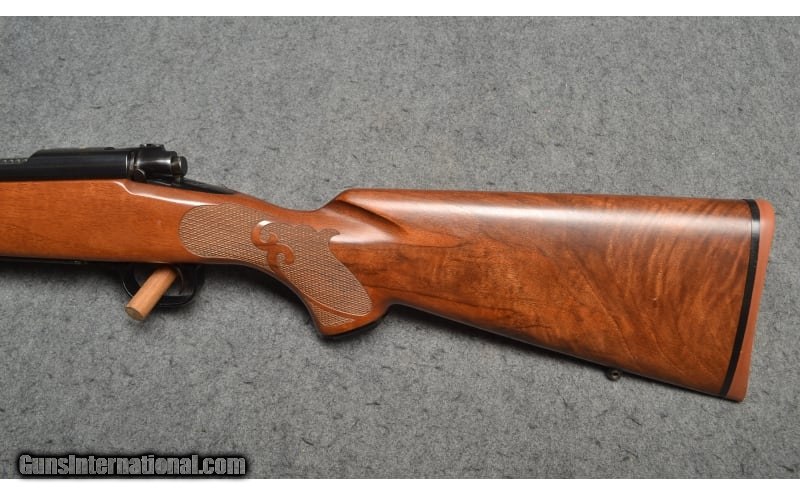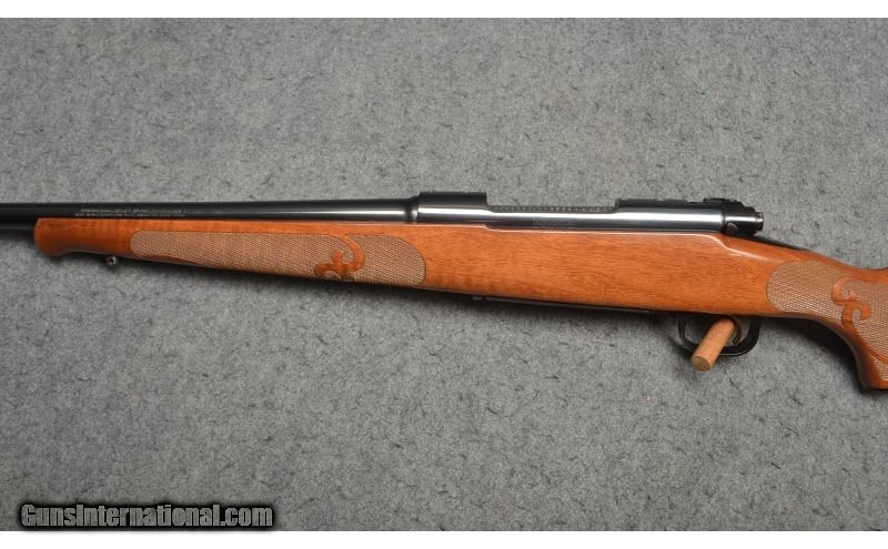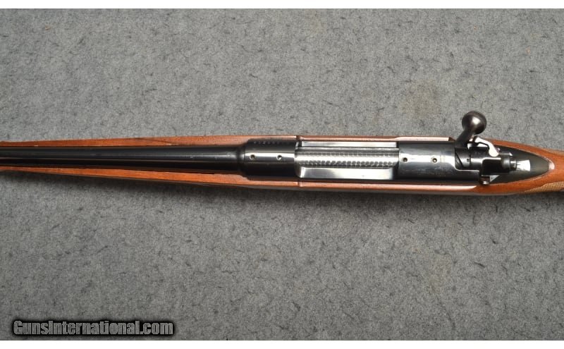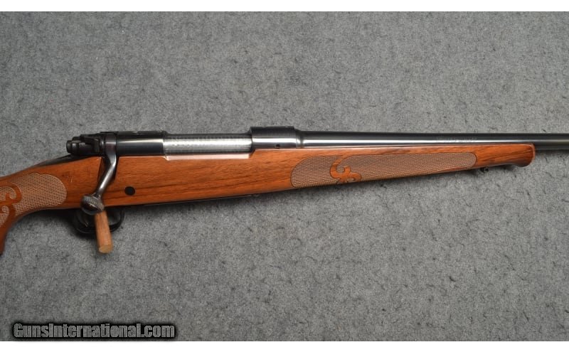 Description: This venerable bolt action rifle is a Winchester Model 70 Featherweight chambered in 6.5X55 Swedish. It has an ornate checkered fleur-de-lis stock, sling mounts top and bottom, an original Winchester hard rubber butt pad, Schnabel forearm, light weight and high grade walnut stock. The bluing is in overall excellent condition, with some noticeable loss at the muzzle. The rubber butt pad does have a small nick on its edge, the underside of the forearm shows some light marring, and there are some very light handling marks noticeable to the stock. The 6.5X55 Swede is an exceptionally accurate round at distance. 6.5x55mm SOLD Metal Condition: "Bluing is in very good condition, with only a slightly noticeable loss at the muzzle Wood Condition: "Overall the wood is in very good condition, with some noticeable marring on the underside of the forearm and some light handling marks around the stock Bore Condition: Bore is bright and shiny with excellent rifling Barrels: 22 inch barrel Stock Dimensions: "LOP 13½ inches, overall length is 42½ inches Fore End: Checkered wood forearm Butt Pad: Original Winchester hard rubber butt pad Weight: 6 LB 12 OZ Sights: Receiver is ready for mounting a scope Item Location: Wichita, KS |