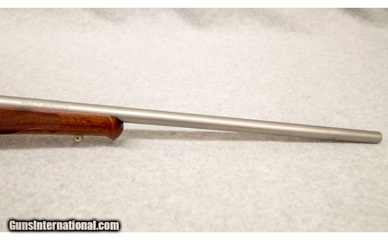 Description: Winchester Model 70 Featherweight Stainless, chambered in .300 WSM. Features include: 24 in. stainless steel free floating barrel with matte finish, target crown, stainless steel receiver, controlled round feed and ejection, MOA Trigger System, Grade I walnut satin finished stock with cut checkering, Schnabel forearm, hinged floorplate, Pachmayr Decelerator recoil pad, 3-pos. safety, sling swivel studs, jeweled bolt body, knurled bolt handle, approx. 7 lbs. .300 WSM SOLD Chambers: .300 WSM Metal Condition: Excellent Wood Condition: Excellent Bore Condition: Excellent Barrels: 24' Stock Dimensions: 13.5' Butt Pad: Rubber Sights: None Item Location: Fort Mill, SC |