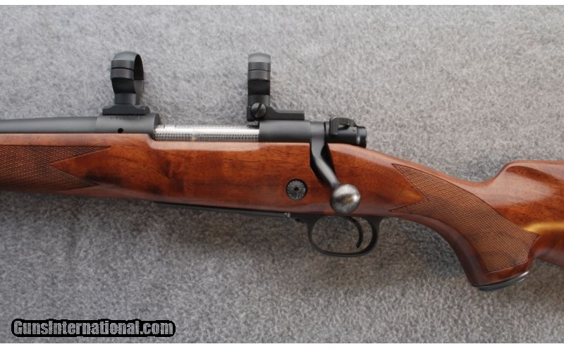 Description: This left hand rifle is matte finished and has a jeweled bolt. Ther are a few light handling marks and a small amount of finish wear at the muzzle. SOLD Caliber Info: 7mm WSM Metal Condition: Very good with light handling marks Wood Condition: Very good with light handling marks Bore Condition: Bright bore with strong rifling Barrels: 24 Triggers: Factory Stock: Checkered pistol grip with metal cap Fore End: Checkered Fore end Butt Pad: Maker's buttpad Weight: 8 lbs. 10 oz. Sights: 30mm Scope rings Item Location: Gonzales, LA |