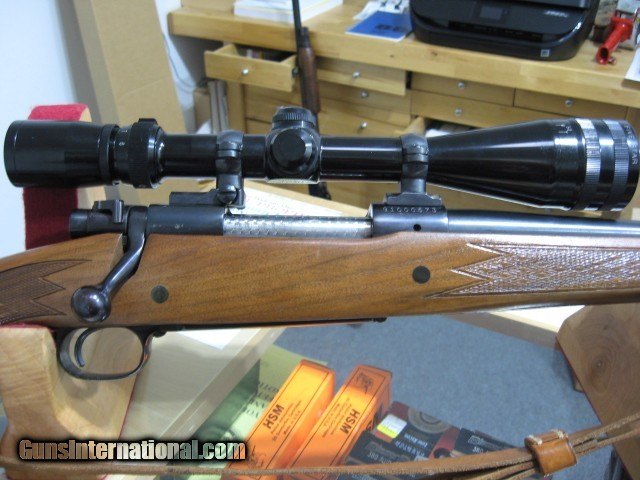 Description: VERY NICE MODEL 70" 300 Win Mag CAL, BOLT ACTION, 24" Bbl, WALNUT STOCK WITH CHEEK PIECE, 3Rd MAGAZINE, JEWELLED BOLT, FIXED FRONT, ADJUSTABLE REAR SIGHT, LEATHER SLING, 8X18 REDFIELD SCOPE AND MOUNTS, LEUPOLD TYPE MOUNT AND RINGS. INCLUDED WITH THE SALE ARE TWO(2) FULL BOXES OF 180 Gr AMMO LOADED WITH GRAND SLAM BULLETS. ALL FACTORY AMMO, GUN WILL SHIP WITH A VERY NICE (appears to be leather) ZIPPERED RIFLE CASE. ALL FEDERAL, STATE AND LOCAL LAW APPLY TO SALE OF THIS ITEM. BUYER IS RESPONSIBLE TO KNOW IF ITEM IS LEGAL TO OWN OR POSSES IN THEIR LOCATION. ITEM WILL SHIP PREPAID (free) TO THE TRANSFER DEALER OF BUYERS CHOICE. " SALE PENDING RECEIPT OF FUNDS " SOLD Rifle Caliber: .300 Winchester Magnum Manufacturer: WINCHESTER Model: 70 Post 64 Serial Number: G1000573 Barrel Length: 24 Condition: VERY NICE Metal Condition: 95+ Wood Condition: 95+ Bore Condition: EXCELLENT Barrel Type: ROUND Action: BOLT Stock: Walnut Finish: BLUE Sights: Adj rear / Fixed front Manufacture Date: 1970 |