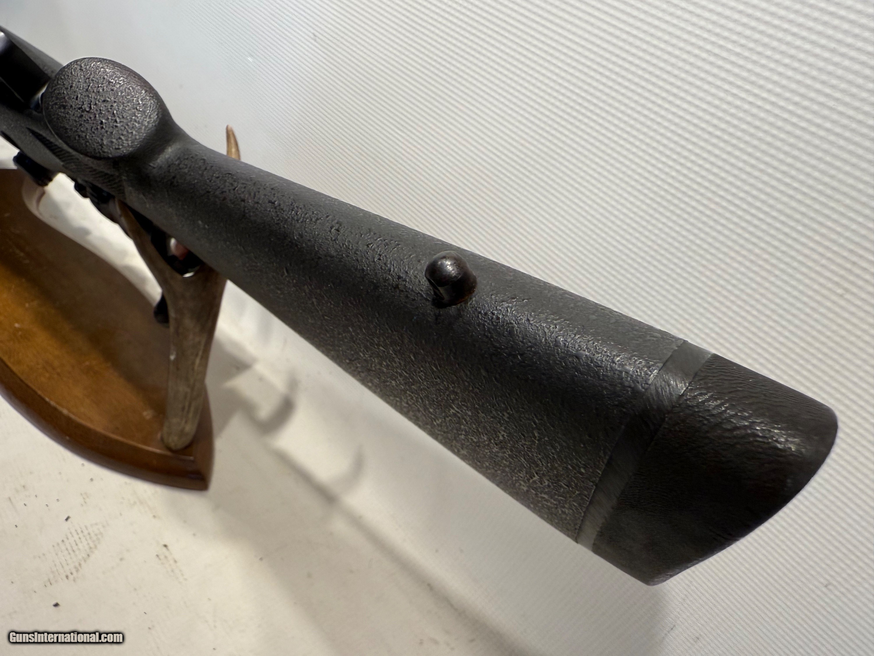 Description: Here we have a Winchester Model 70 SA chambered in .22-250. This gun features a Vortex 4-12x44 scope, a push-feed action, 26 in. heavy barrel w/o sights, matte blue finish, redesigned black synthetic stock with aluminum pillar bedding, 3 or 5 shot mag., 10 lbs. Mfg. 2004-2006. This gun is in good condition. The stock has some imperfections on the bottom and is in 80% +/- condition. The barrel and reciever have some wear marks and imperfections. They are rated at 80% +/- condition. The bore has great rifling and is in 90% +/- condition. Overall, this rifle is in 85% +/- conditon! Please call us with questions before purchasing. SOLD Rifle Caliber: .22-250 Remington Manufacturer: Winchester Model: 70 SA Stealth II Serial Number: G2530007 Barrel Length: 26” Condition: 85% Metal Condition: 80% Wood Condition: 80% Bore Condition: 90% Action: Bolt |