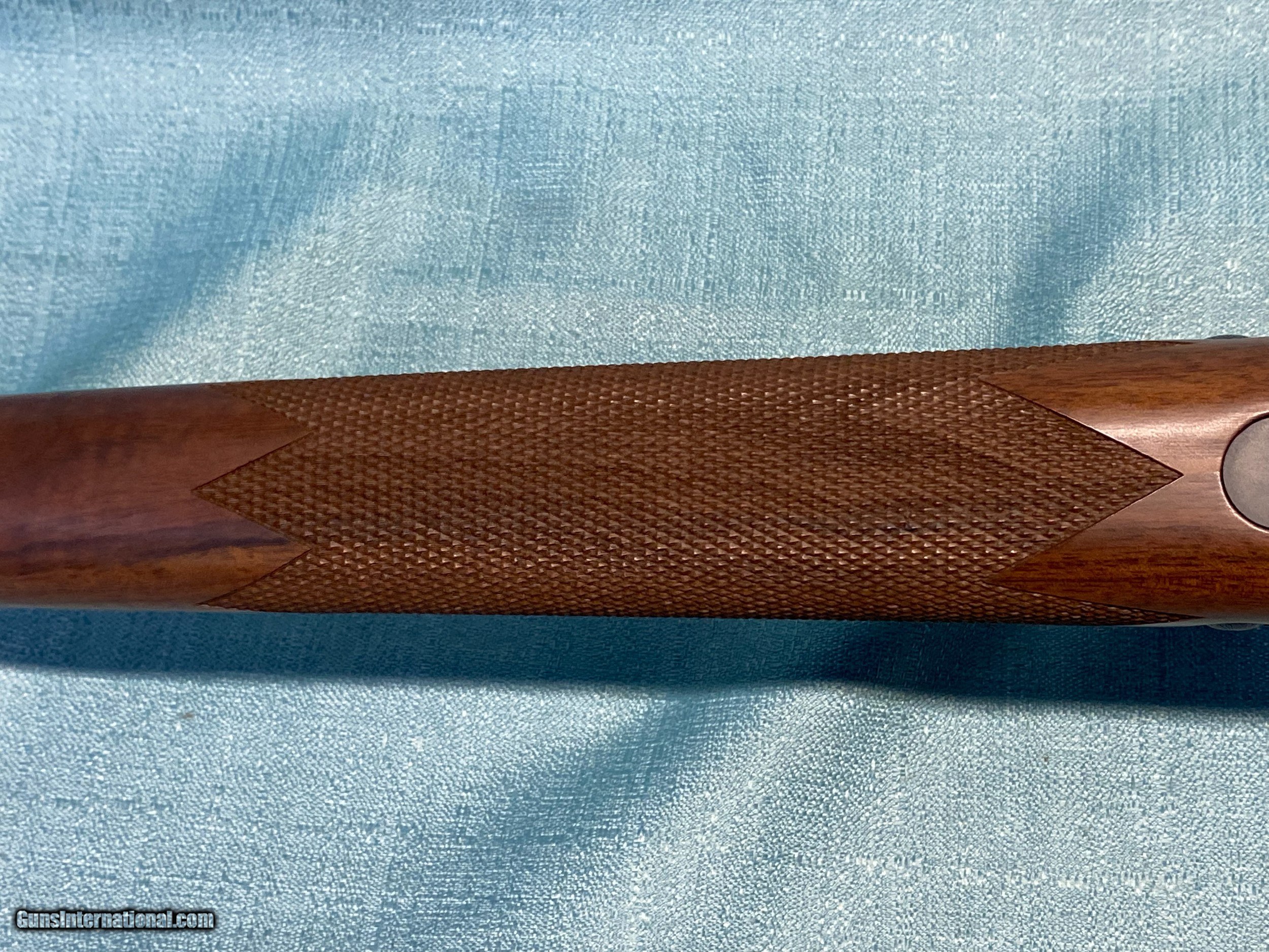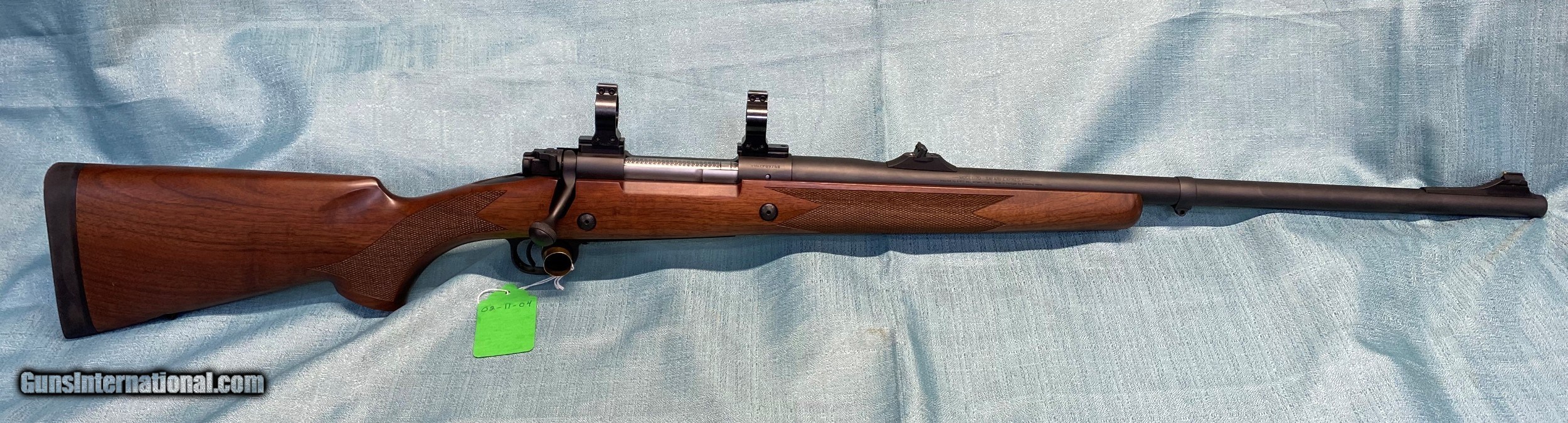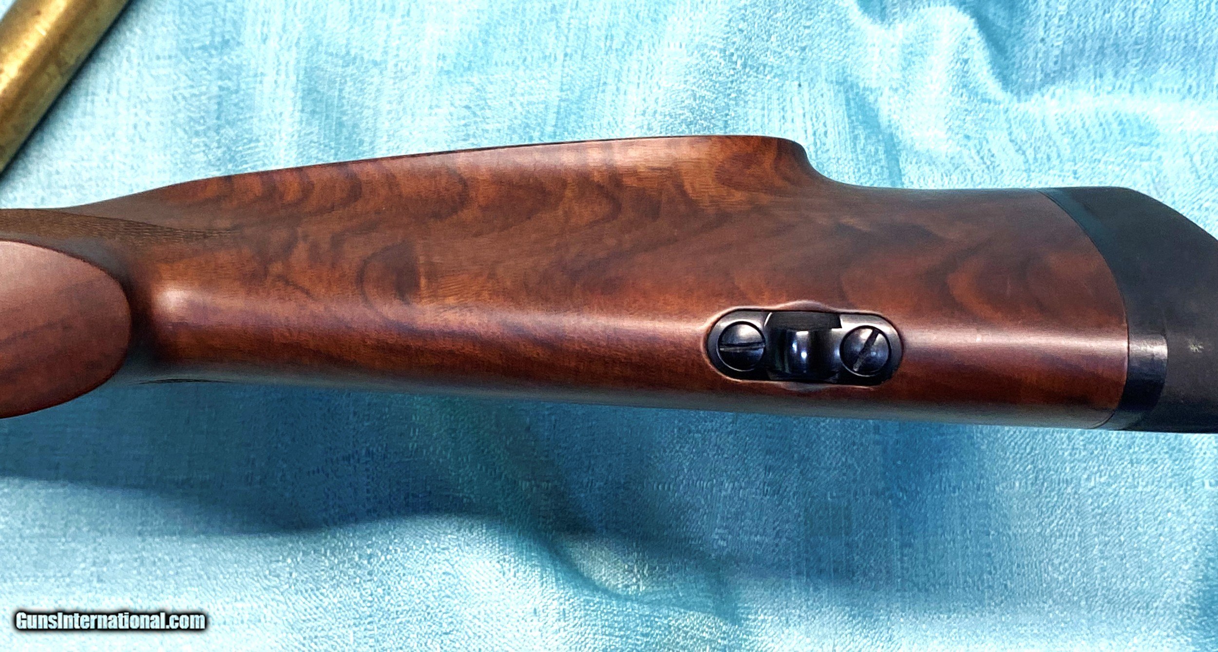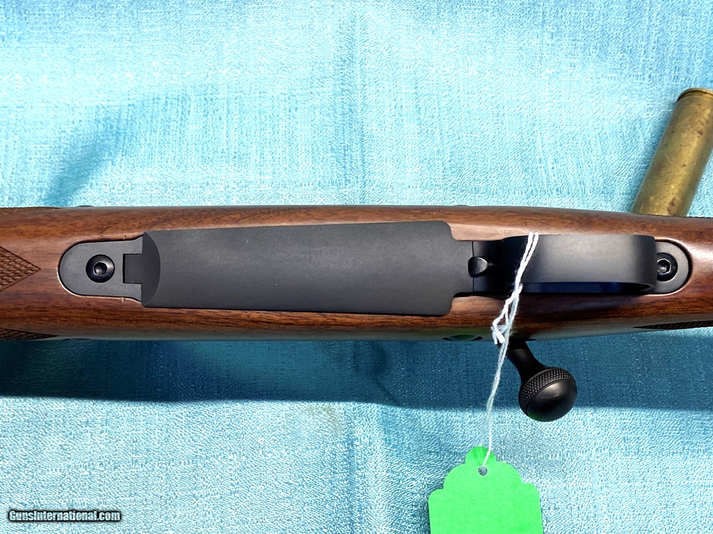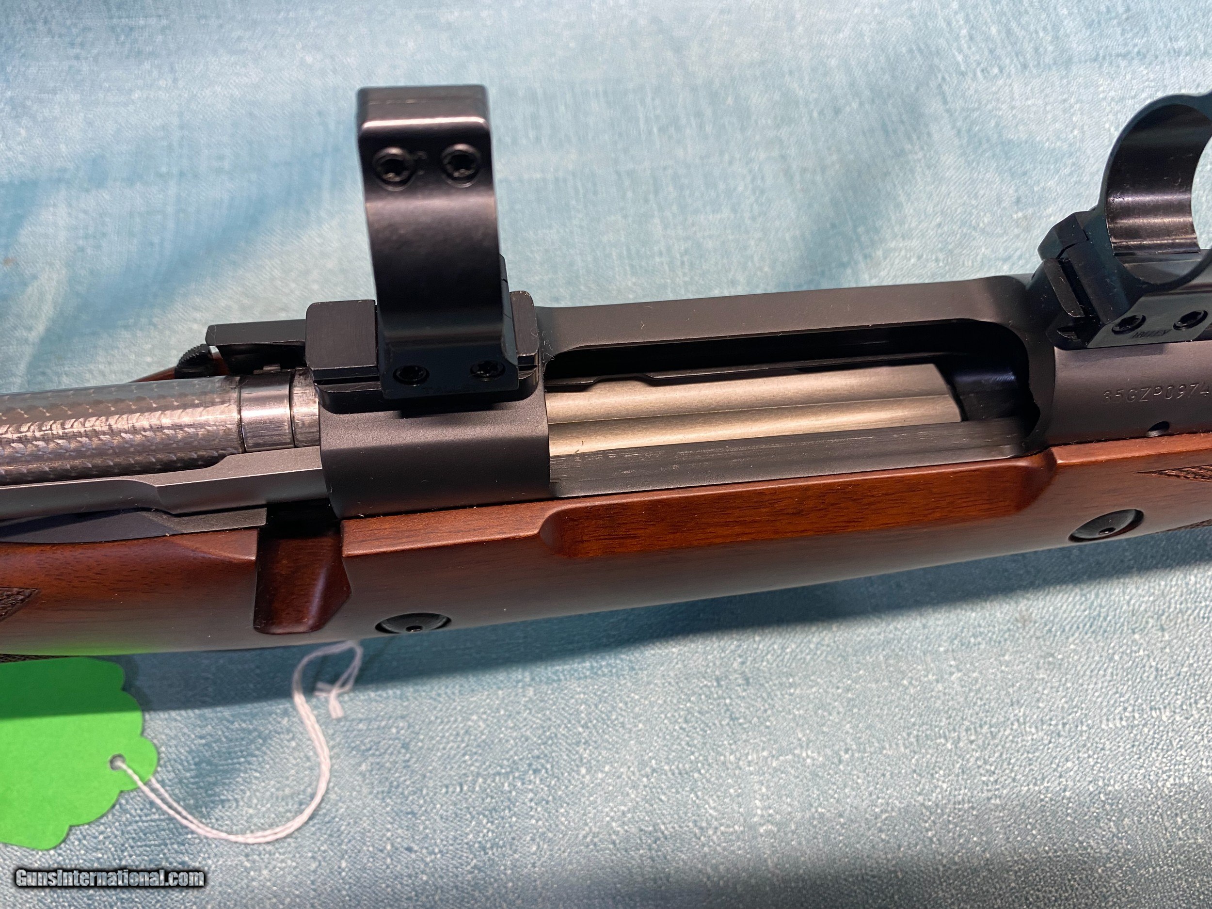Description: This Winchester model 70 with control round feeding is in excellent condition. It is chambered in the Classic Game stopping 375 H&H Magnum cartridge. This rifle is the Safari Express version and has Tally scope mounts and rings already installed. Very nice smooth bolt with the classic three position safety. It is also fitted with a very nice and crisp trigger and sling mounts professionally installed at the factory. Maine Residents add 5.5% Sales Tax Price reflects a cash discount of 3.5% SOLD Rifle Caliber: .375 H&H Magnum Manufacturer: Winchester Model: 70 Safari Express Serial Number: 35GZP09748 Barrel Length: 24 Condition: Excellent Metal Condition: Excellent Wood Condition: Ezcellent Bore Condition: Excellent Finish: Matte Blued Item Location: Buxton Maine |